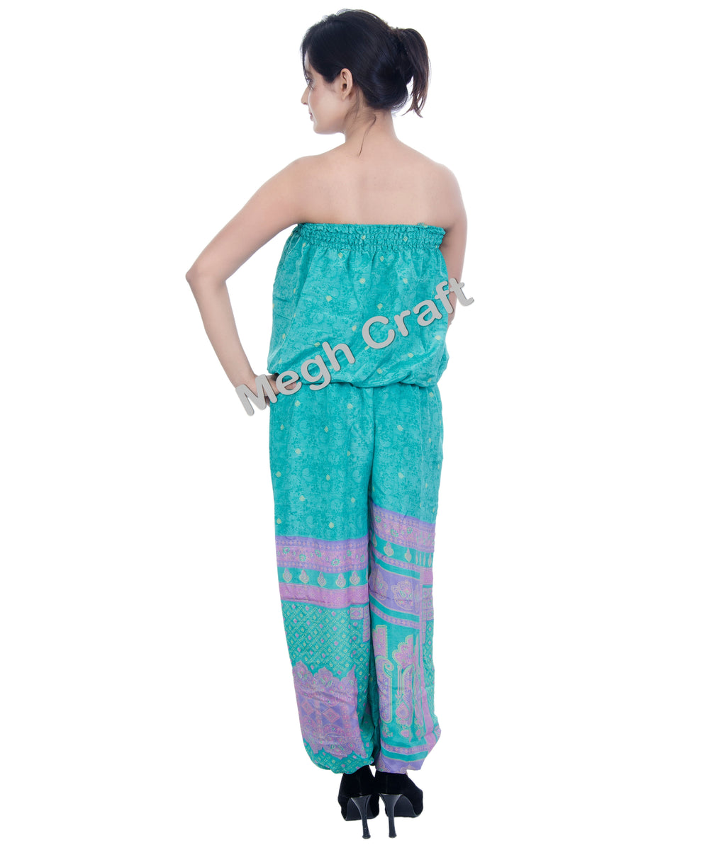 Diseñador de ropa de moda de verano Mono de mujer Sari de seda vintage reciclado, mono ahumado.