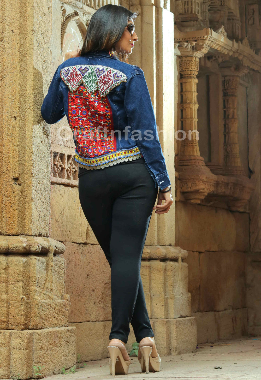 Chaqueta india bordada a mano con espejo hecha a mano por un experto artesano gujarati indio que tiene ambos bordados laterales con un aspecto brillante y llamativo.