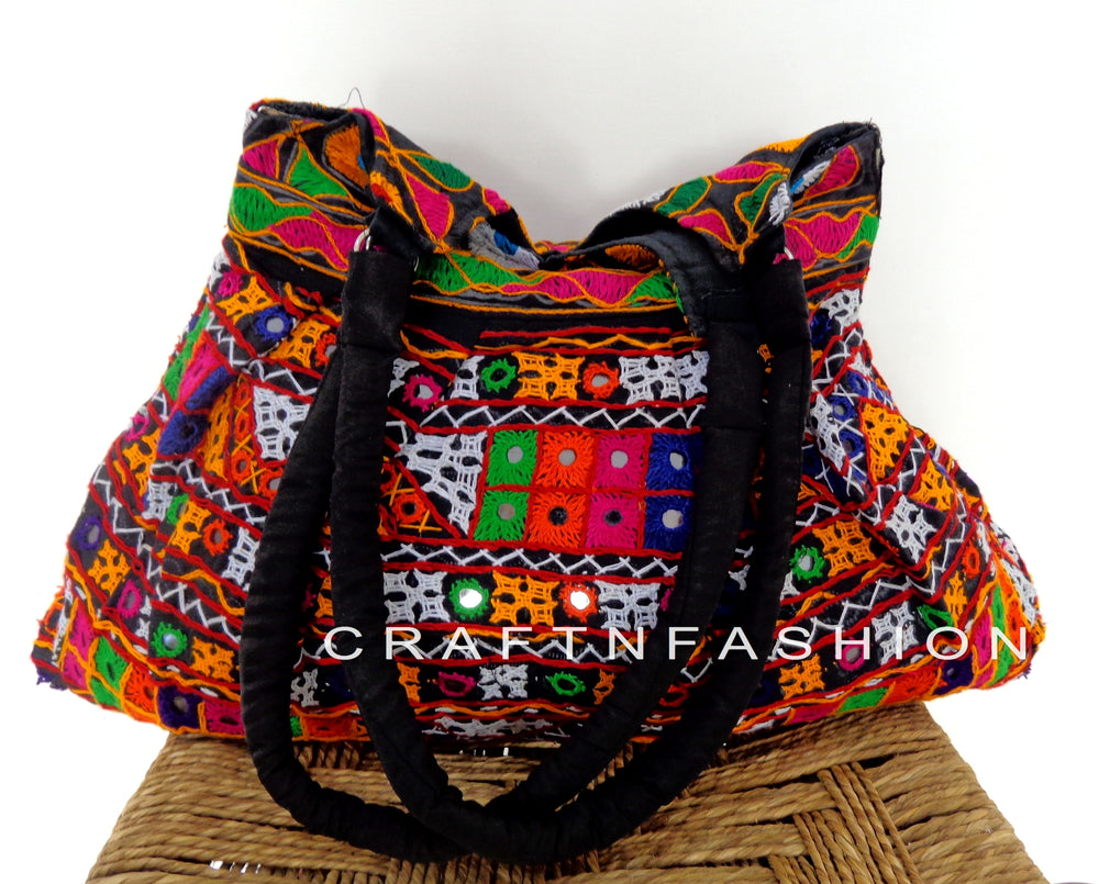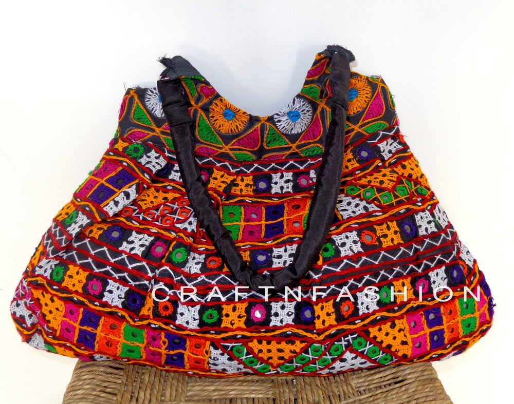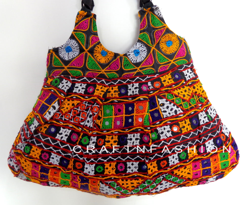 Exclusivo Bolso Jhola de Moda Bohemia. Este es un auténtico bolso bordado a mano de los nómadas tribales de Gujarat llamados Banjara.