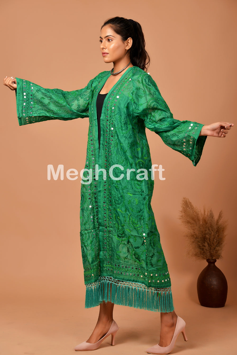 Bata tipo kimono con borde de trabajo con lentejuelas/Sitara/Tikki bordadas a mano con hilo. Tiene ambos lados bordados con un aspecto brillante y llamativo. Los patrones de bordado tradicionales te harán lucir moderna y hermosa.