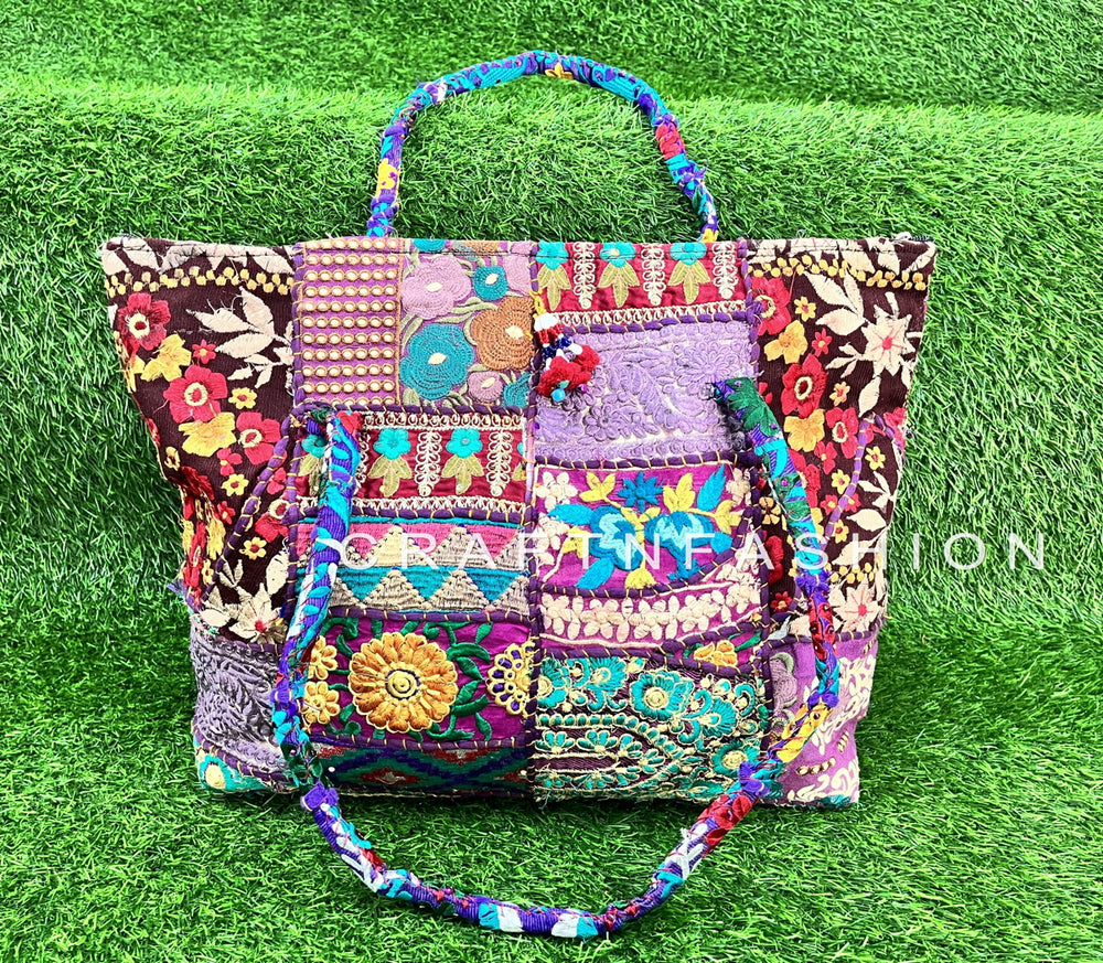 Exclusivo bolso tote de patchwork de moda bohemia. Este es un auténtico bolso bordado a mano de los nómadas tribales de Gujarat llamados Banjara.