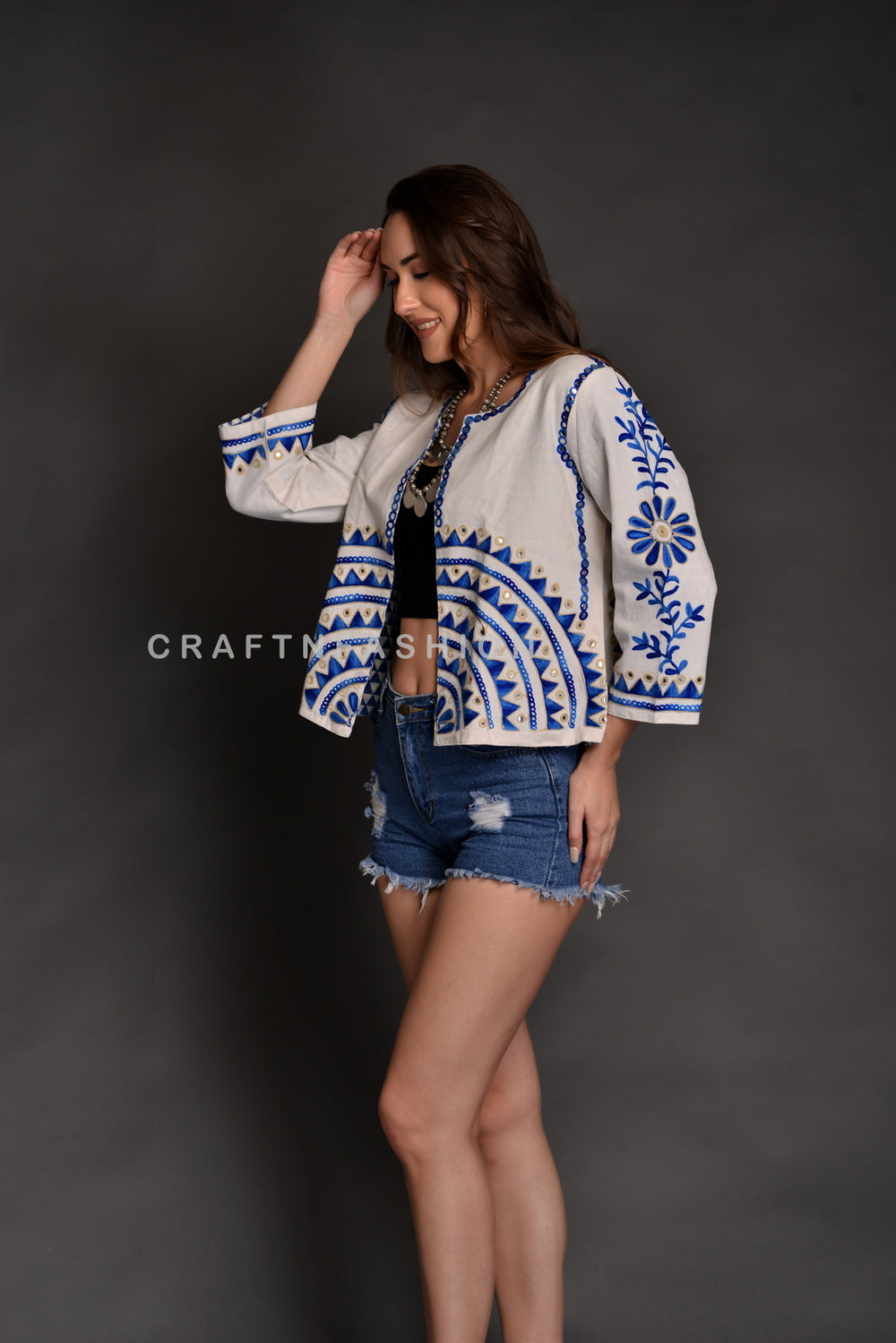 Indian Latest Designer Mirror Work Jacket.