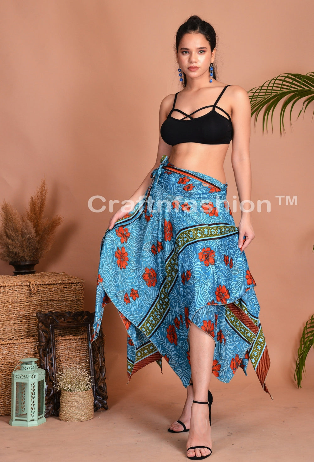 Falda envolvente estilo sari en zigzag de seda reciclada vintage india.