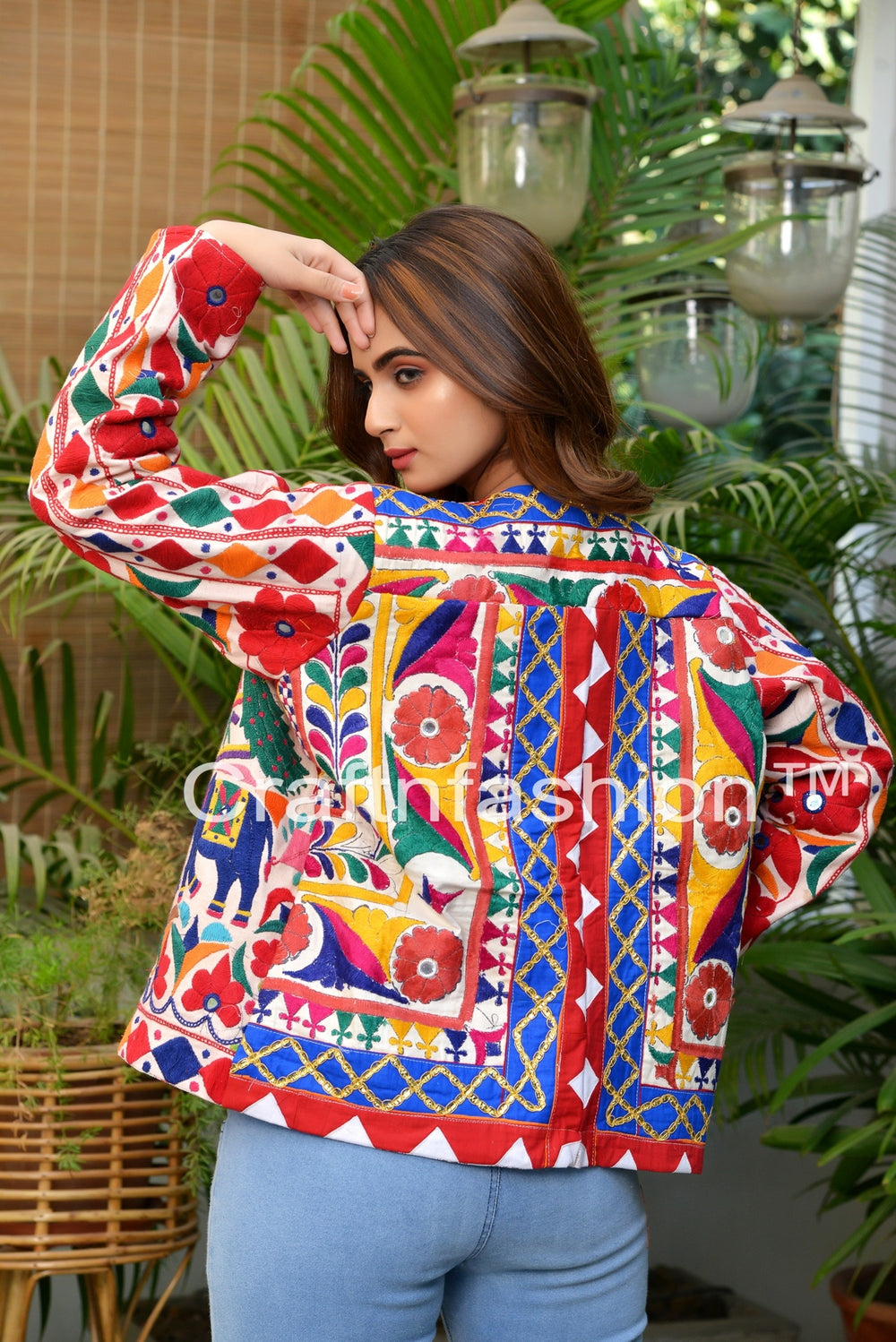 Está hecho de tela nómada tribal Gujarati Vintage Kutch. Hacemos nuestras chaquetas Banjara totalmente bohemias con telas vintage muy bien coleccionables que Gujarati Trible Ladies tardará entre 2 y 3 meses en terminar. Esta chaqueta larga bordada a mano estilo Banjara es una pieza única que rara vez está disponible. Ideal para moda bohemia, aspecto gótico, estilo bohemio, ropa de fusión y moda gitana.
