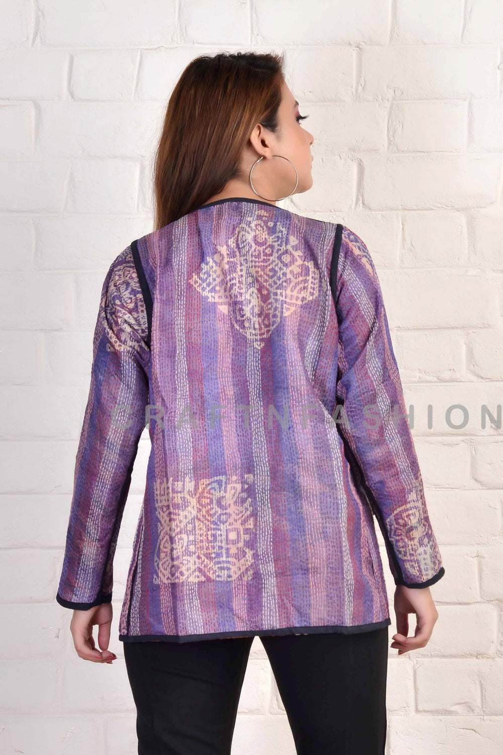 Diseñador indio Kantha Shrug. Kantha Elegante abrigo de cintura reversible hecho a mano. Ideal para uso formal, uso diario, moda bohemia, chaqueta Kantha bohemia.