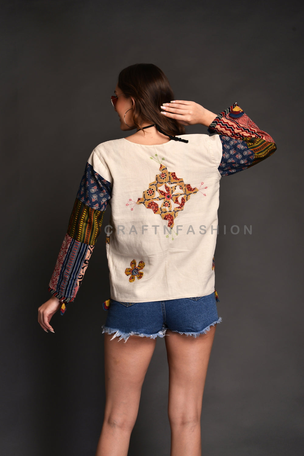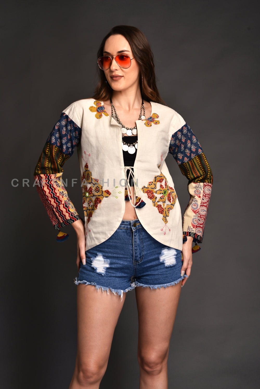 Indian Cotton Vintage Gypsy Handmade Ajrakh Applique Work Jacket.