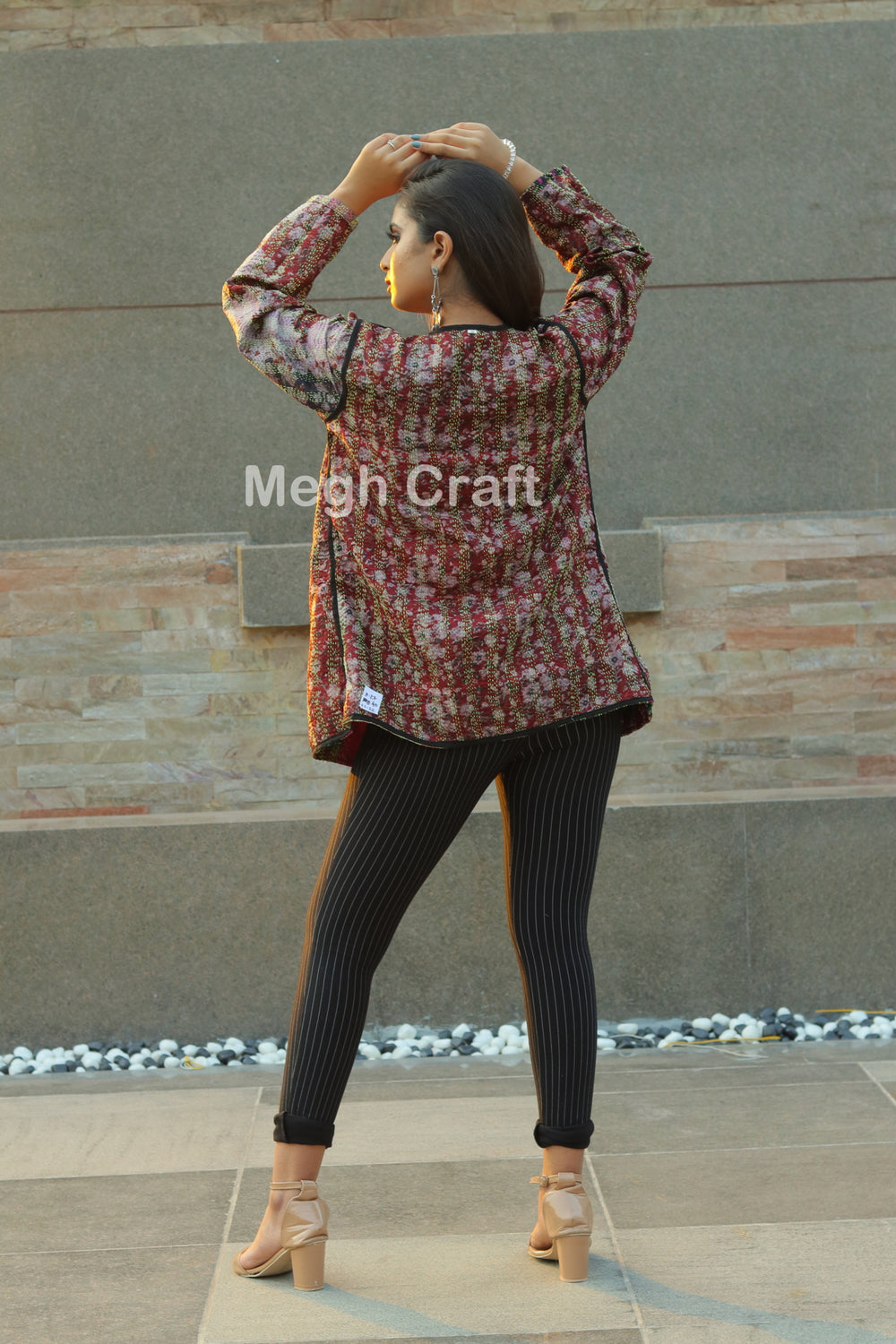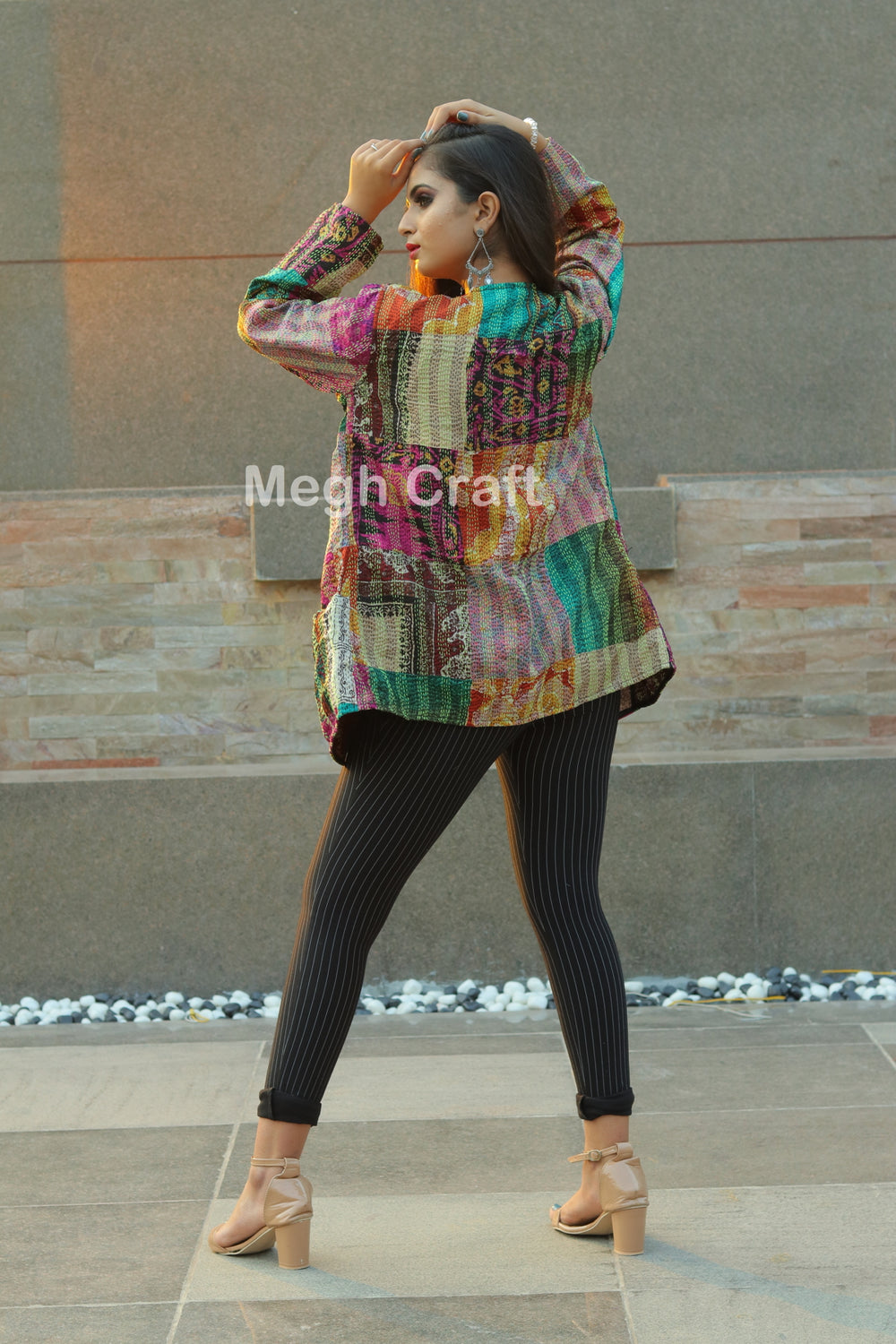 Bolero reversible hecho a mano del diseñador indio Kantha. Kantha Elegante abrigo de cintura reversible hecho a mano. Ideal para uso formal, uso diario, moda bohemia, chaqueta Kantha bohemia.