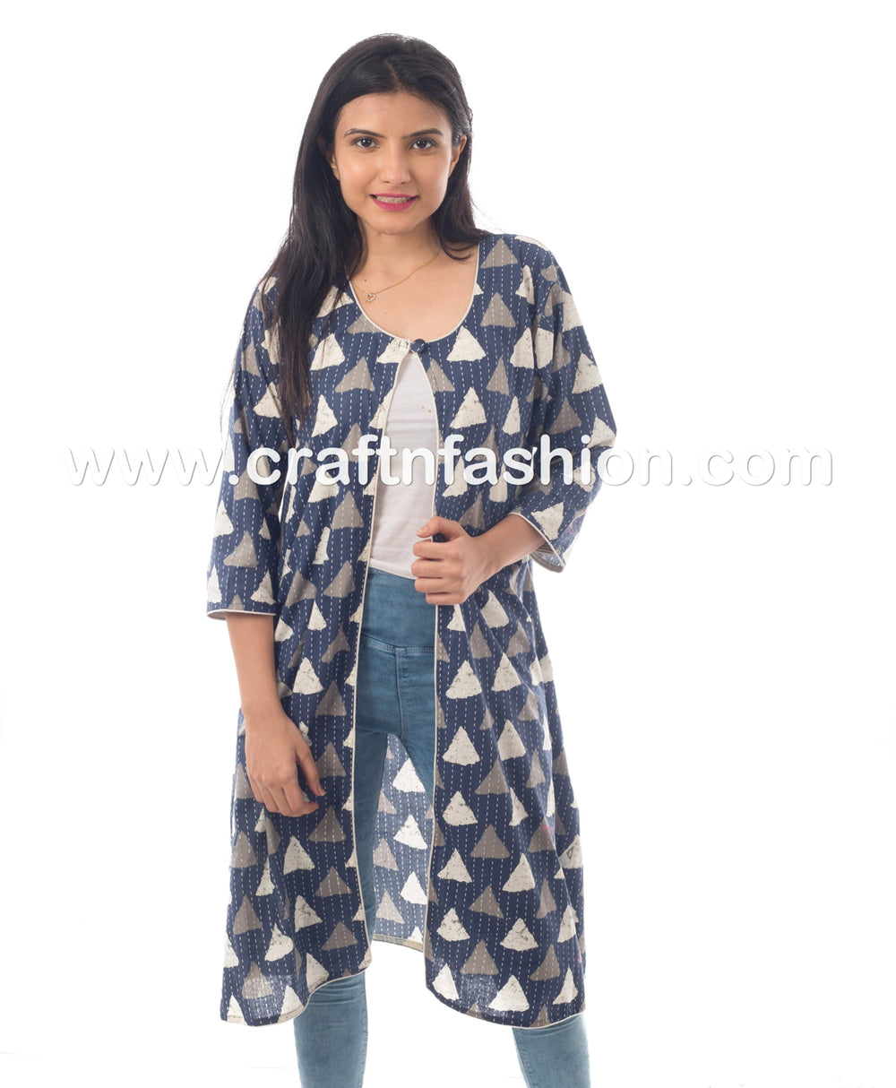 Bloque de algodón a mano Estampado Ajrakh / Gamthi Estampado largo de hombros, chaqueta. Ideal para uso formal, uso diario, moda de verano, moda bohemia.