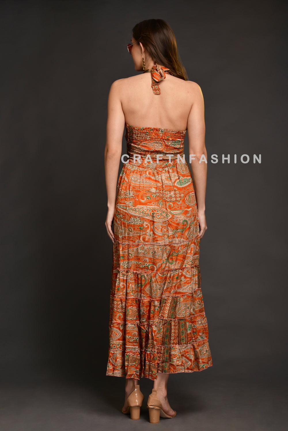 Exclusive Satin front Slit spaghetti style smocked maxi dress. Best Suitable for Party wear, Bridesmaid Wear, Trendy Fashion wear, Bohemian Western Wear and Gift for her.