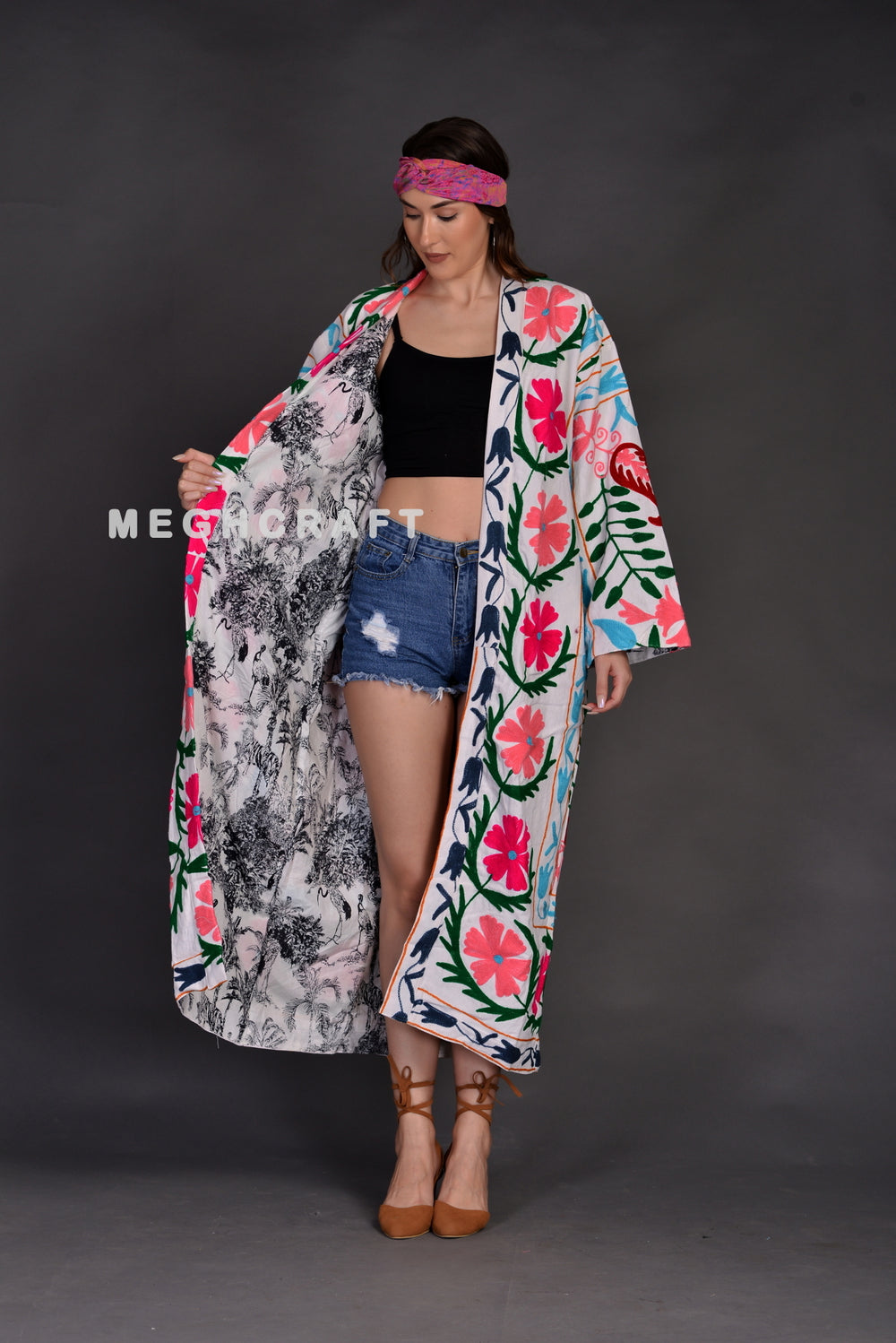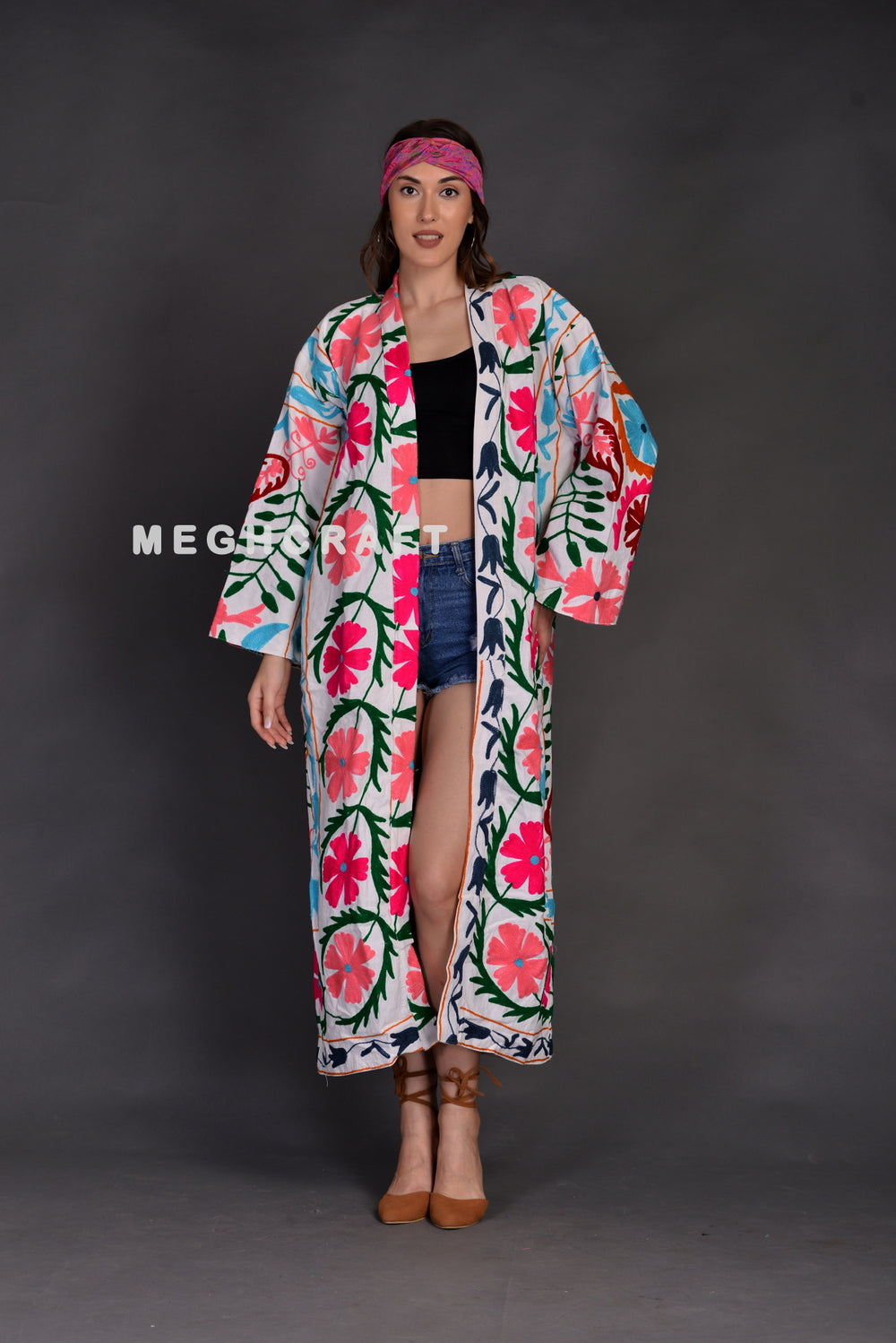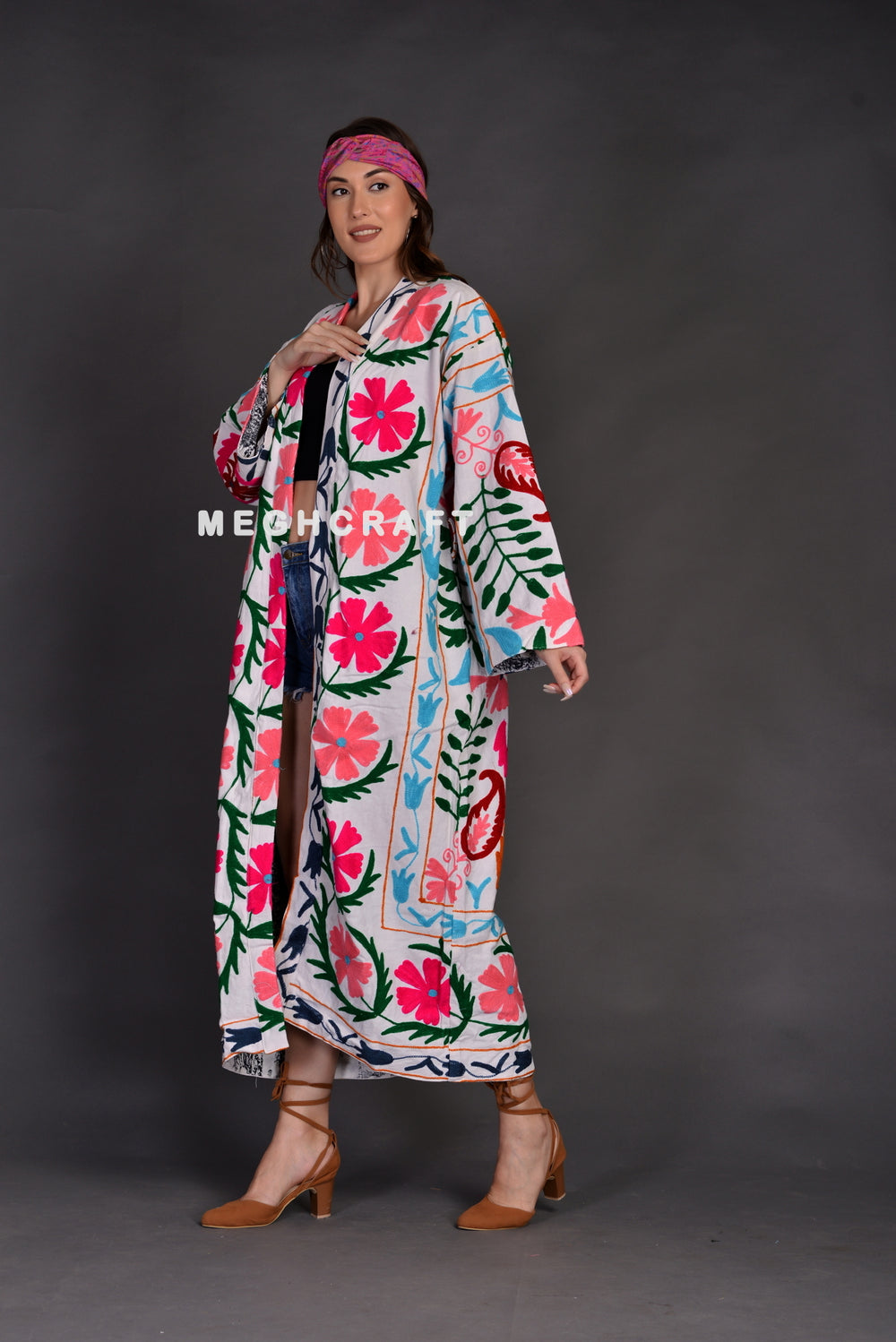 Bohemian Fashion Wear Handmade Suzani Embroidered Kimono Jacket Overcoat.
