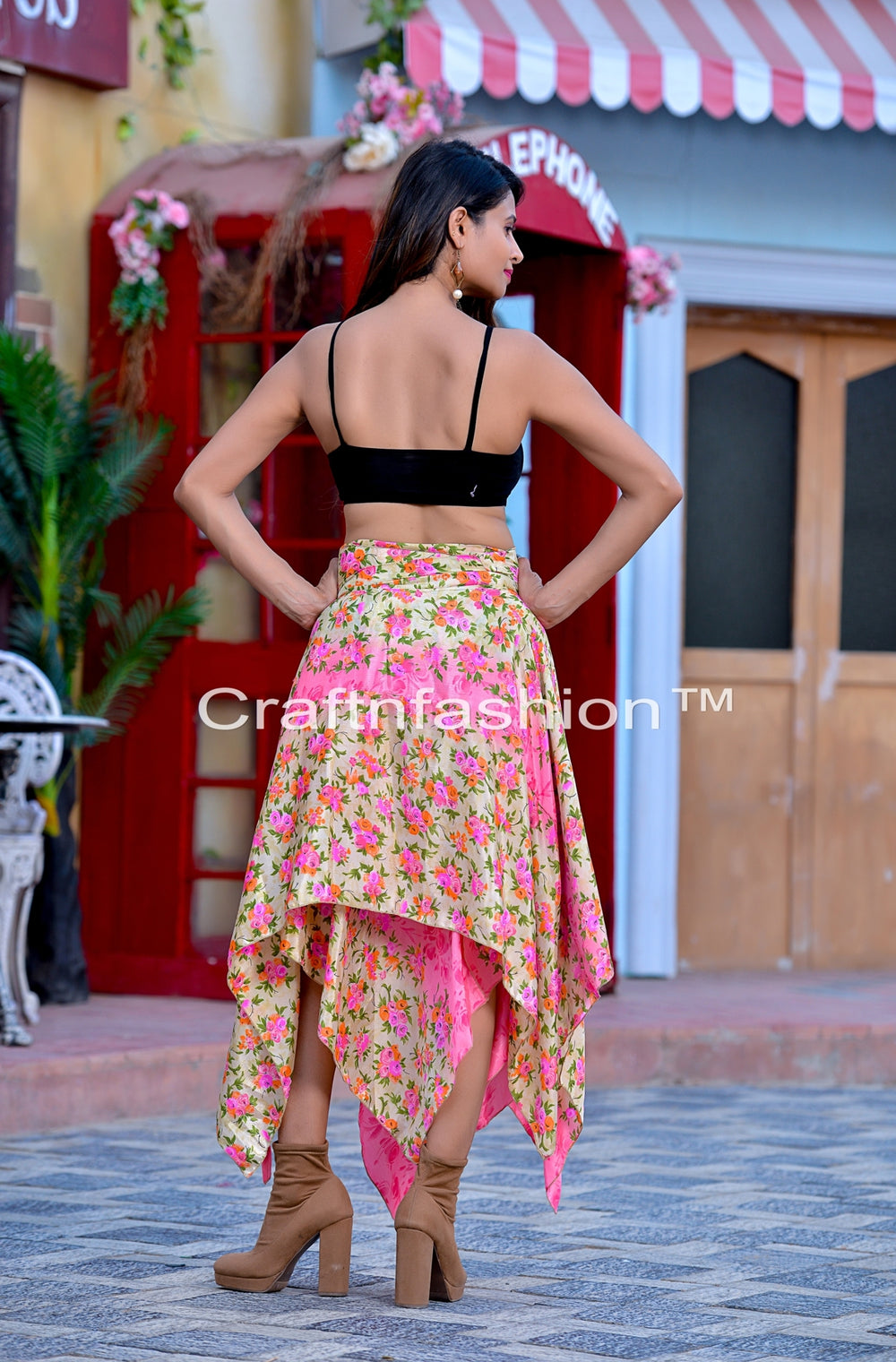 Jupe enveloppante de style Sari en soie recyclée vintage indienne.