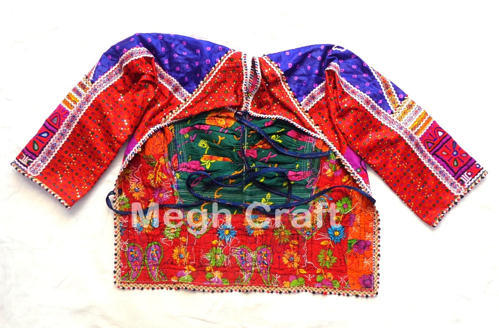 Chemisier brodé Boho Gpsy Kutch, chemisier de travail tribal indien vintage fabriqué à la main Blouse dos nu Kapda ornée de broderies à la main et de travail miroir. Il s’agit d’un chemisier dos nu brodé vintage bien conservé de collection.