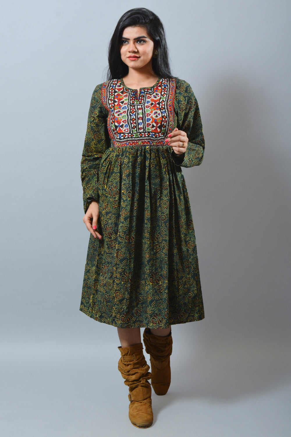 Designer indien ethnique porter coton bloc à main imprimé brodé Kurti , Kurta , Tuniques.