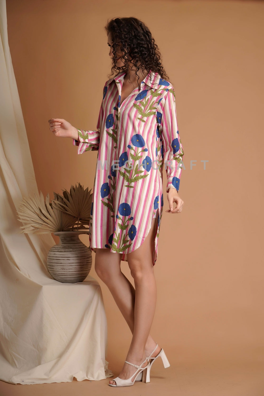 Boho Fashion Beach Wear Robe chemise imprimée à la main, haut.