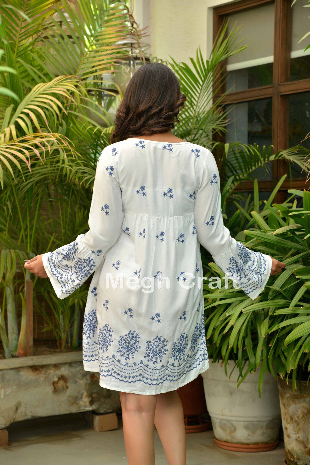 Designer Rayon Beach Wear Mini-robe brodée. Idéal pour les vêtements de plage, la mode estivale, la mode durable, la mode bohème et plus encore.