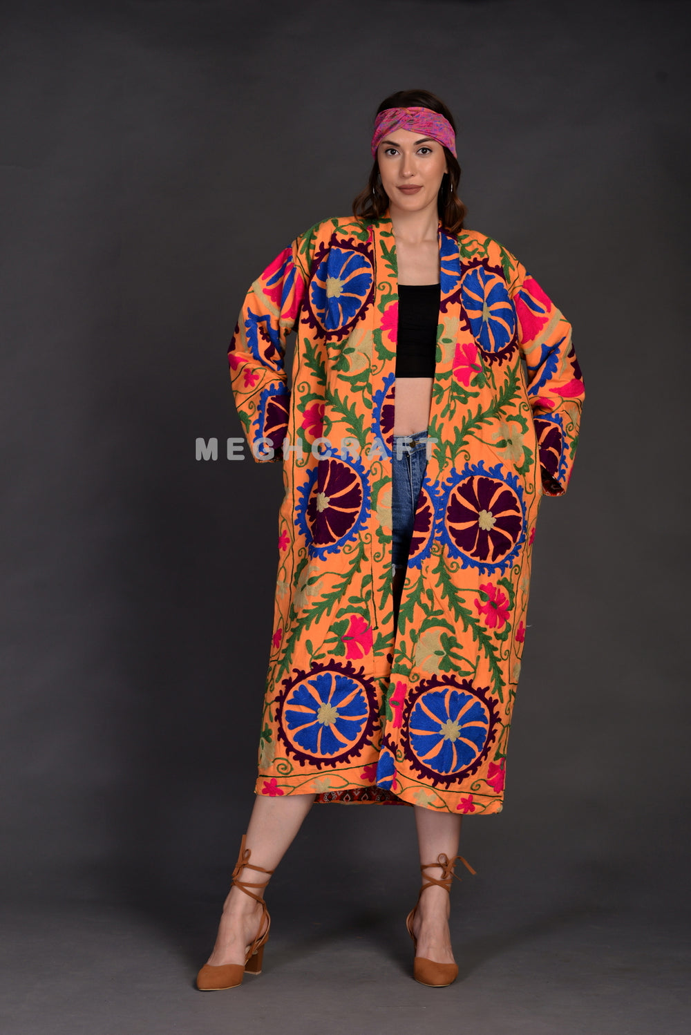 Suzani Embroidered Jacket Long Overcoat for Winter