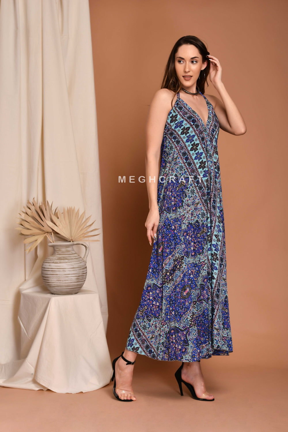 A Designer Beautiful Silk Free Size Maxi Dress Maxi dress which shimmers, for special Party lunches and Beach evening Party, a perfect dress to shine like a Goddess. Wonderfully feminine to celebrate all festivals and special occasions.