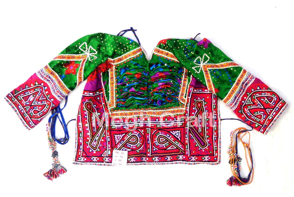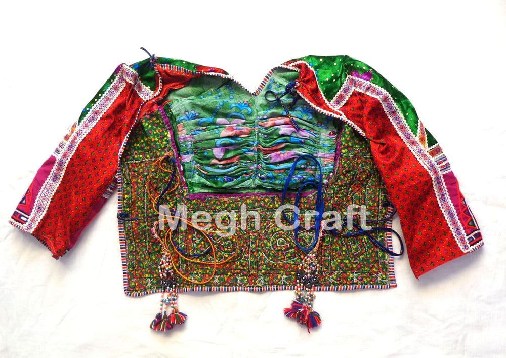 Chemisier brodé à la main, chemisier Bajara, chemisier dos nu Kapda, chemisier de travail tribal indien vintage fabriqué à la main agrémenté de broderie à la main et de travail miroir. Il s’agit d’un chemisier dos nu brodé vintage bien conservé de collection.