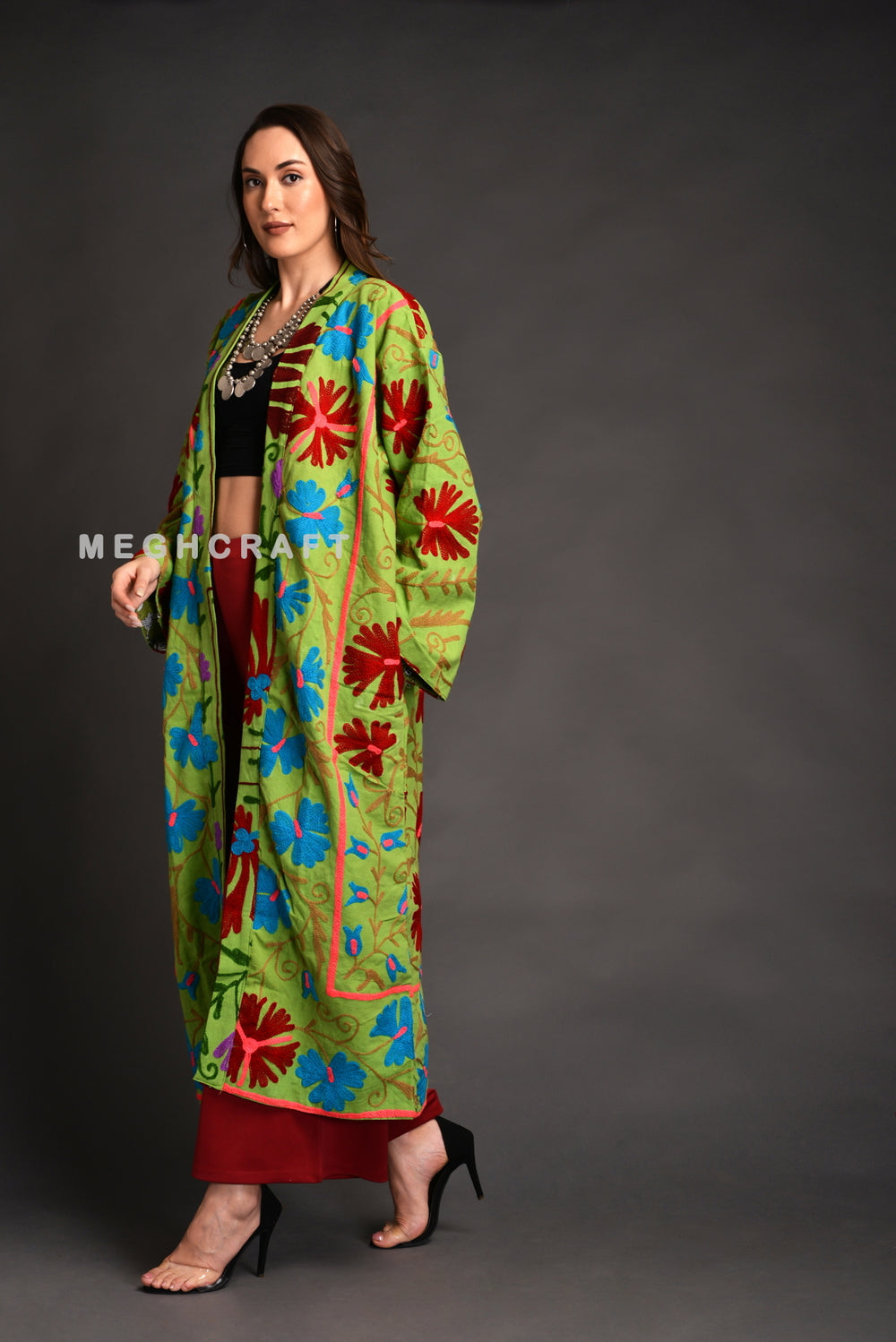 Bohemian Fashion Indian Cotton floral Embroidered Suzani Long jacket.