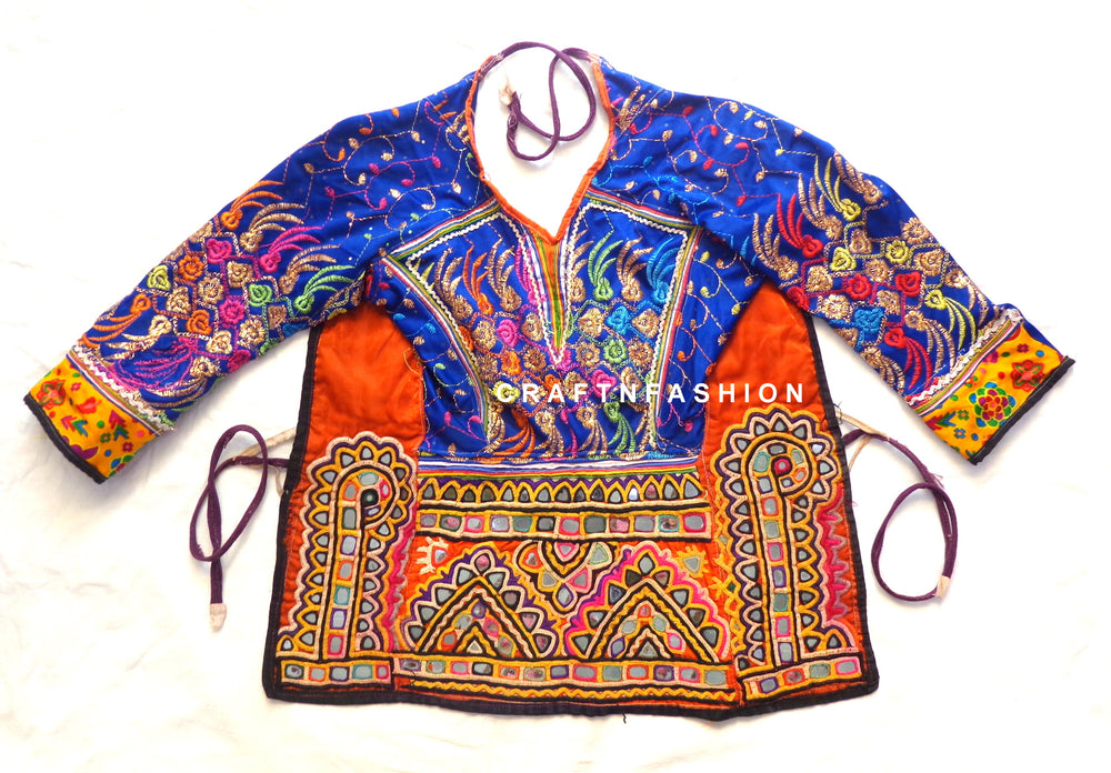 Chemisier traditionnel indien, chemisier de travail manuel Kutch, chemisier de travail tribal vintage indien fabriqué à la main Blouse dos nu Kapda ornée de broderies à la main et de travail de miroir. Il s’agit d’un chemisier dos nu brodé vintage bien conservé de collection.