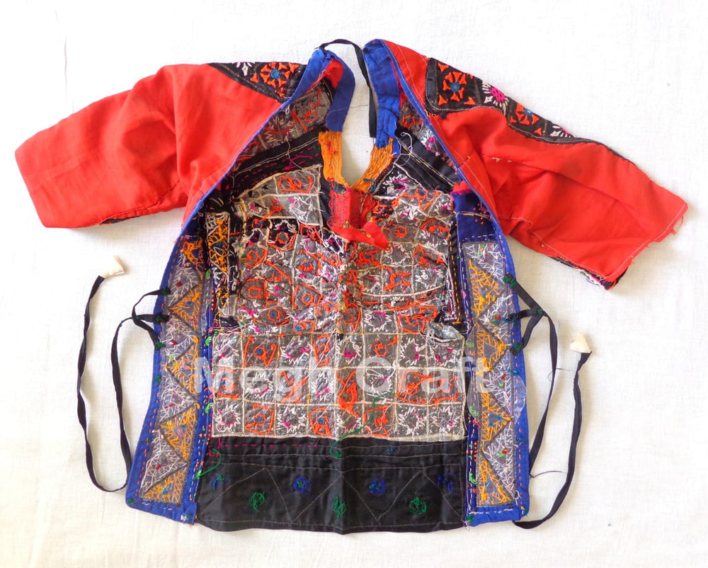 Blouse Kutch Gypsy Rabari, Blouse de travail tribal Kapda Blouse dos nu agrémentée de broderie à la main et de travail miroir. Il s’agit d’un chemisier dos nu brodé vintage bien conservé de collection.