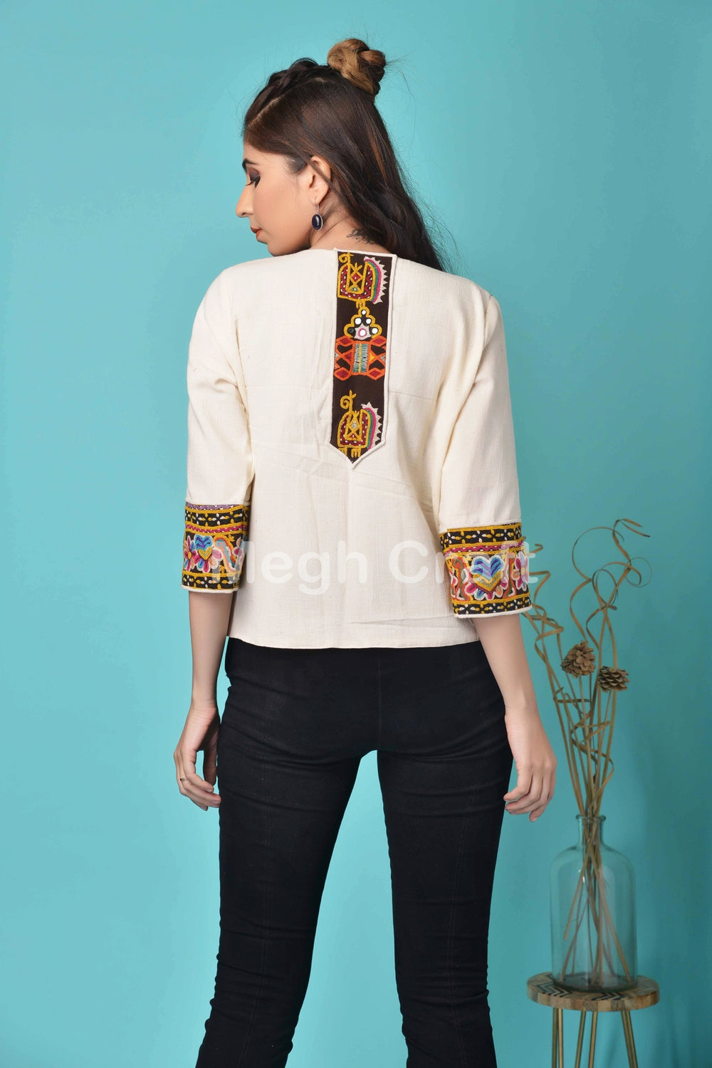 Indien Gujarat Kutch Brodé Miroir Travail Gypsy Patchwork Soie Boho Veste Top