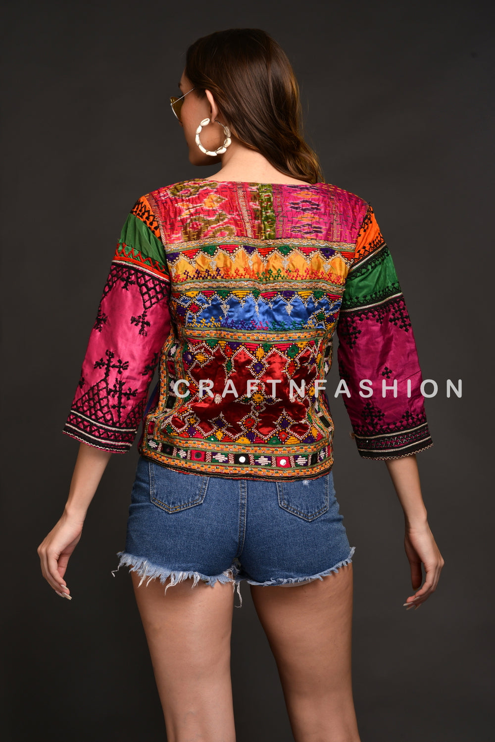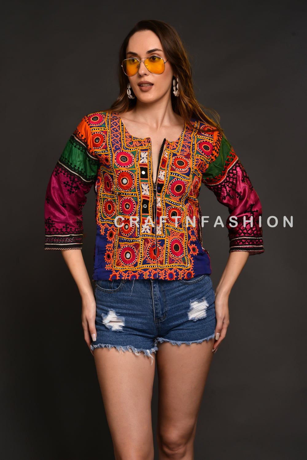 Indian Cotton Vintage Gypsy Banjara Jacket-Waistcoat with Zip closer.