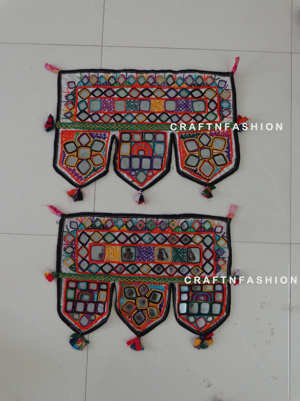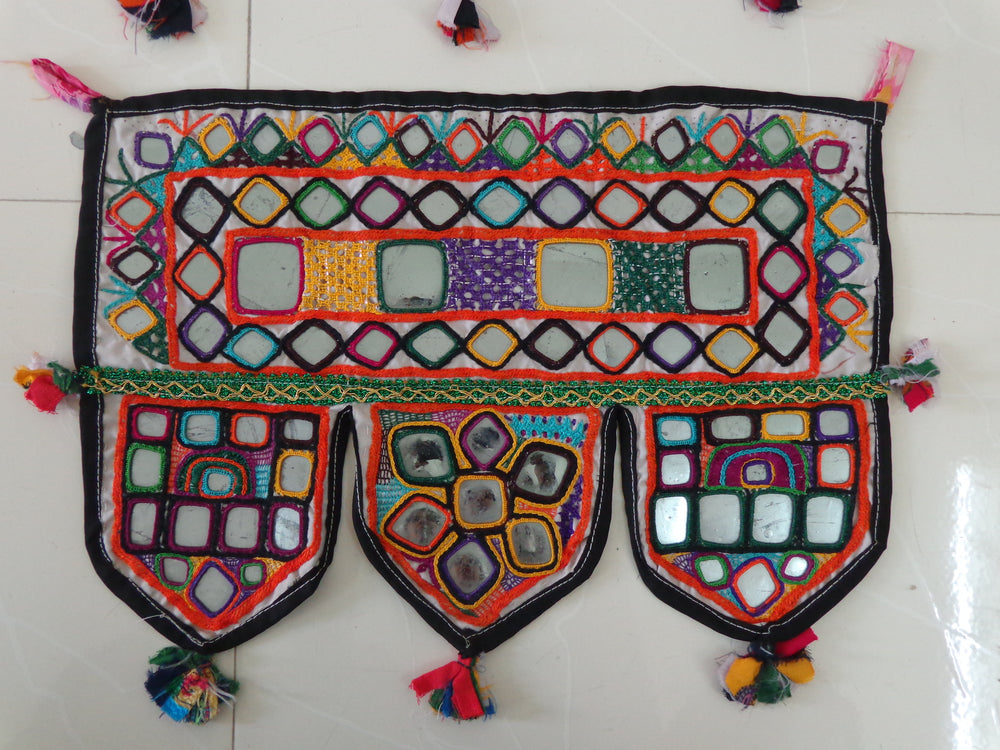 Gypsy bohemian "Indian Kutch vintage " Door hanging made on cotton fabric with Kutch Rabari hand embroidered mirror work, belongs to Gujarat.