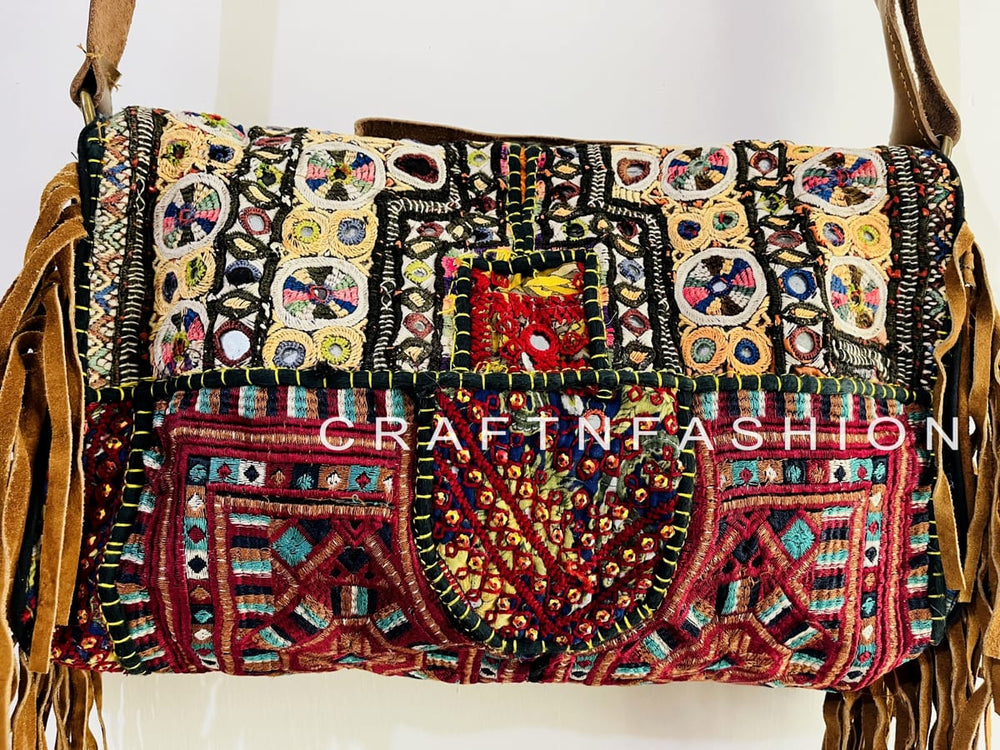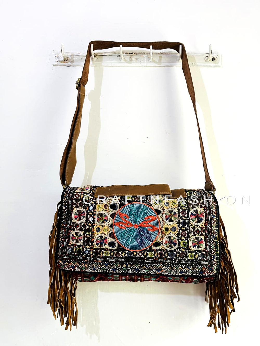 Exclusive Bohemian Fashion Banjara Patchwork Sling Bag Embellished. This is an authentic Hand embroidered bag from the tribal nomads of Gujarat called Banjara.