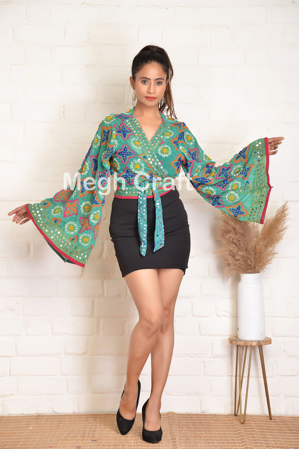 Designer Indian Embroidered Handmade Bell Sleeve Tie Top. Its Tie top so can be flexible for any size.