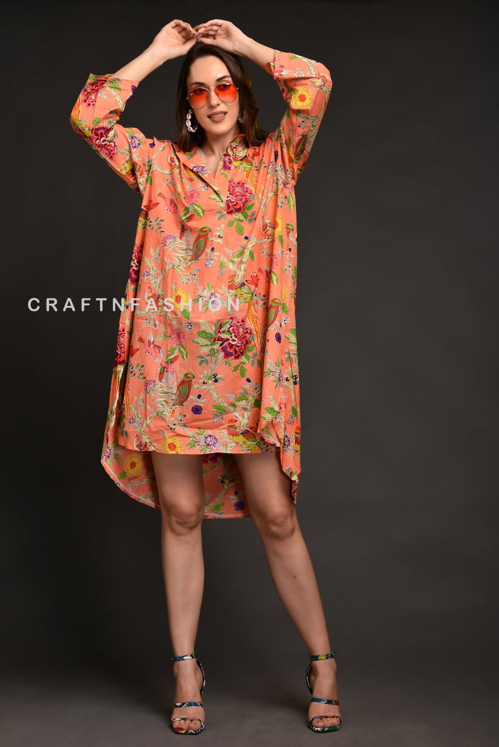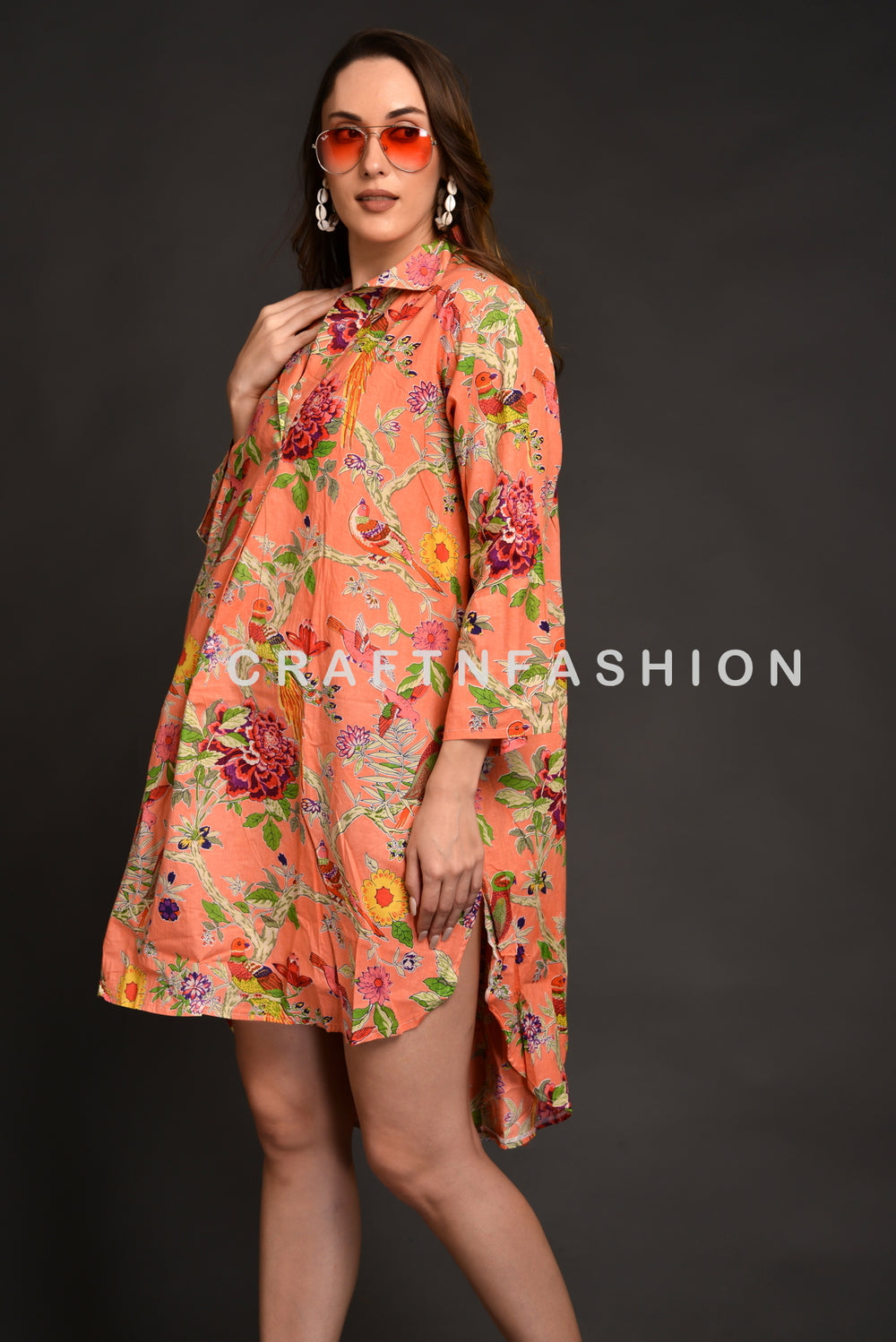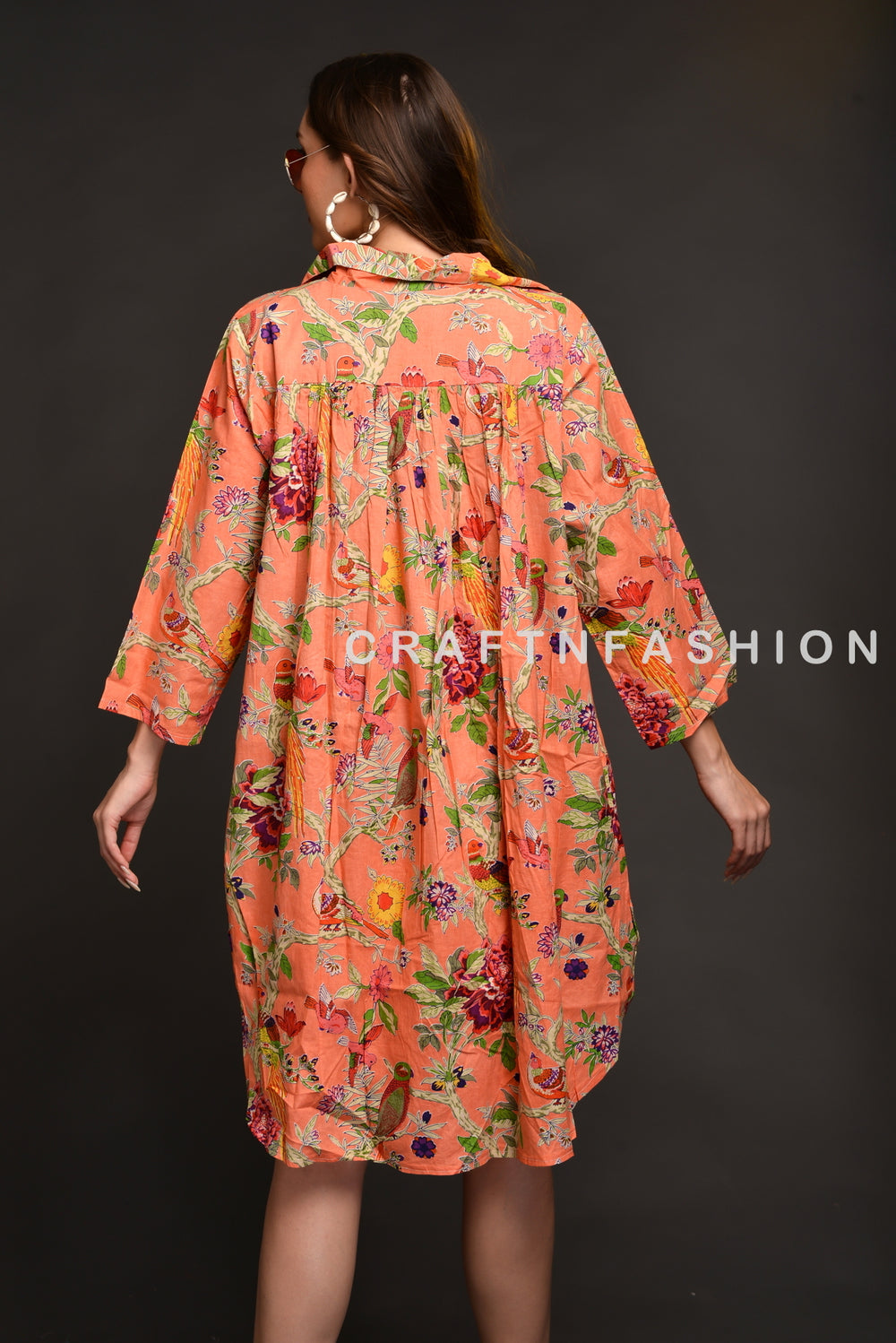 Boho Fashion Beach Wear Printed Shirt Dress, Top.