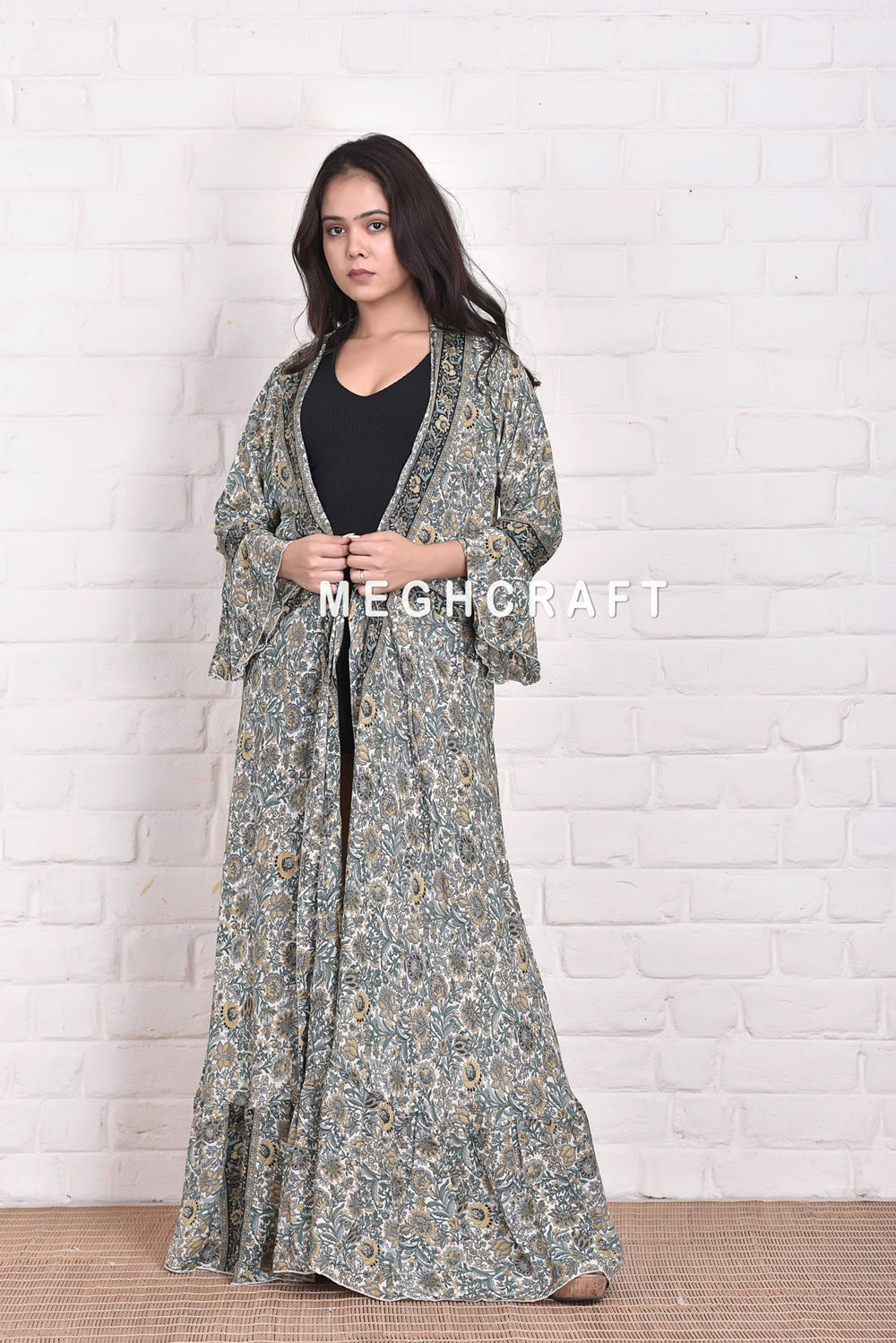 Sleeve : Apprx 22-23" inches Frilled sleeve style.