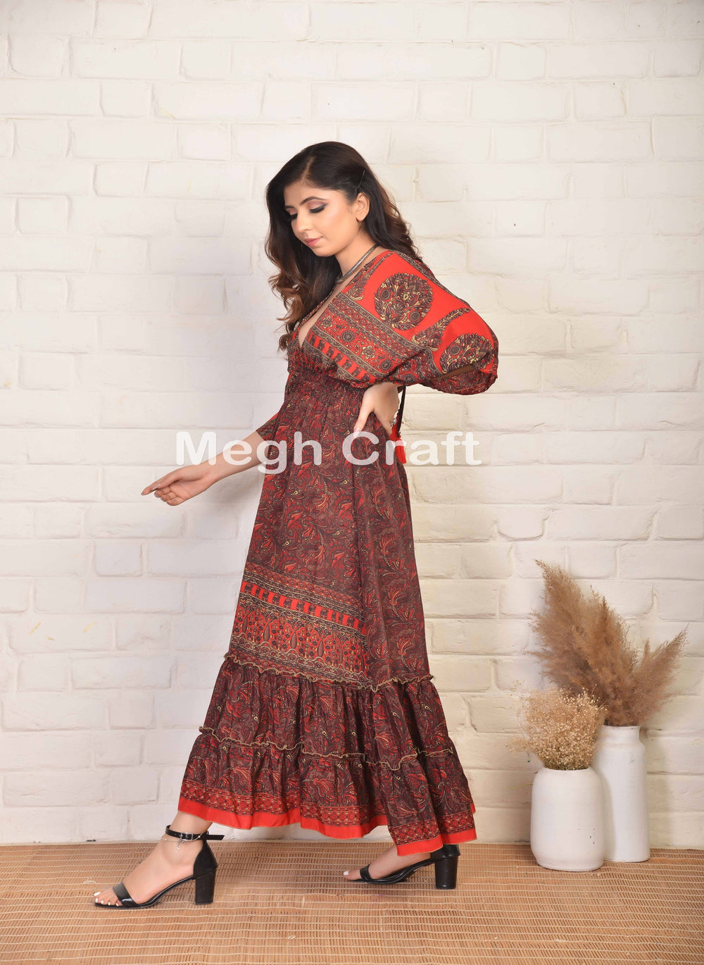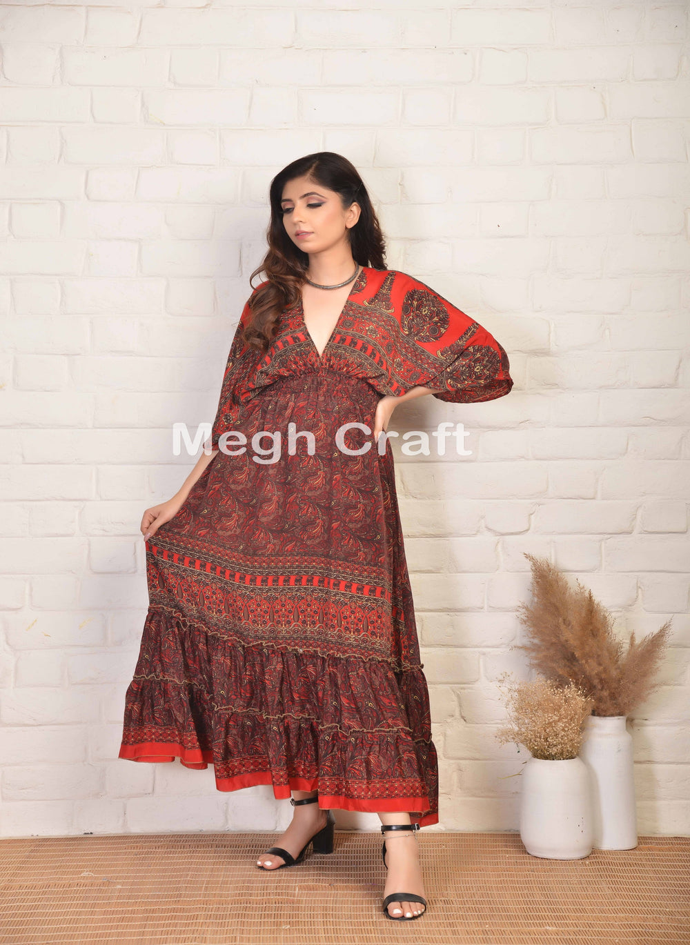 Latest Designer Summer fashion Bohemian V Neck maxi dress with side slit . Best Suitable for Summer fashion , Bohemian style , Beach Wear , Dance costume & urban fashion style .Exclusively Made in India.