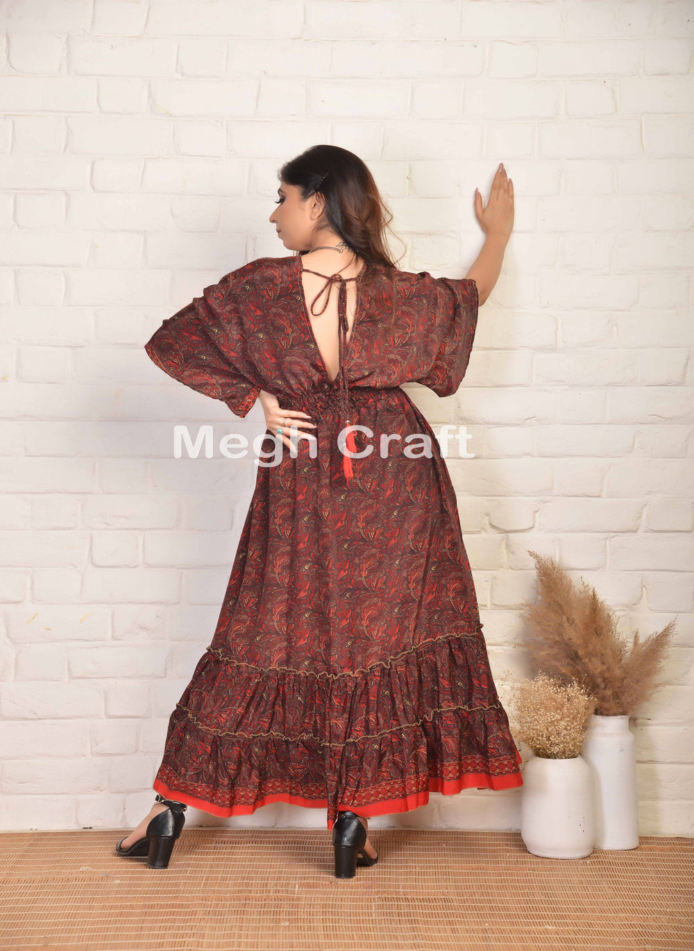 Add a touch of timeless elegance and eco-conscious style to your wardrobe with our Upcycled Silk V-Neck Maxi Dress. Made from repurposed vintage Indian silk saris, each dress is completely unique in print and color. Featuring a flattering V-neckline, flowy silhouette, and breathable fabric, it's the perfect choice for beach holidays, summer outings, or relaxed resort wear. This dress blends sustainability with bohemian charm, offering comfort and effortless grace in every step.
