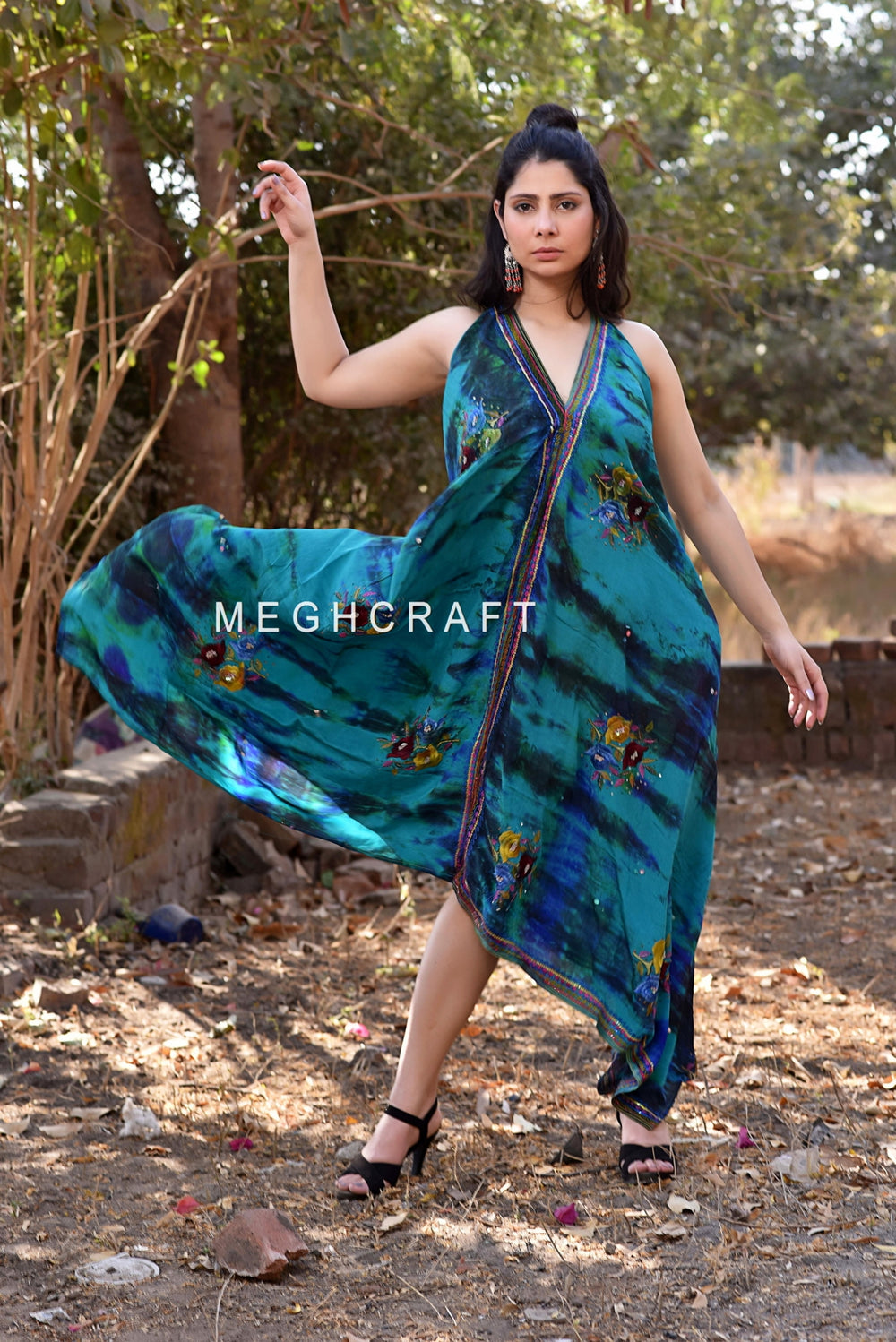 Exclusive Tie Dye Vintage Embellished Beaded Hand work sari made Boho Beach Party Wear Dress , it is completely original and one of a kind Dress.
