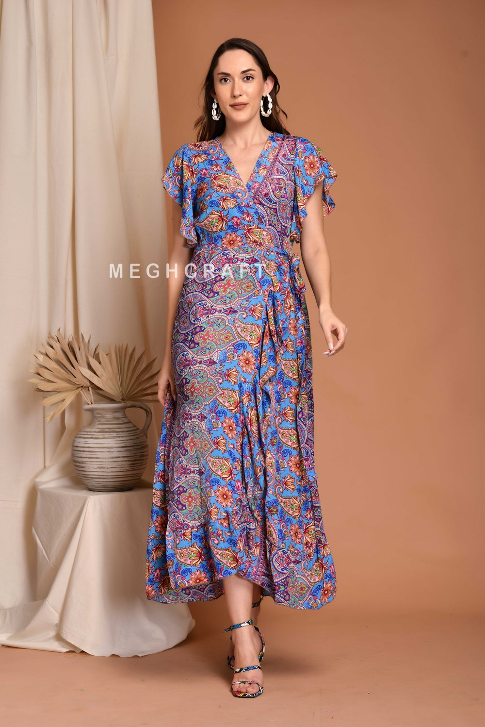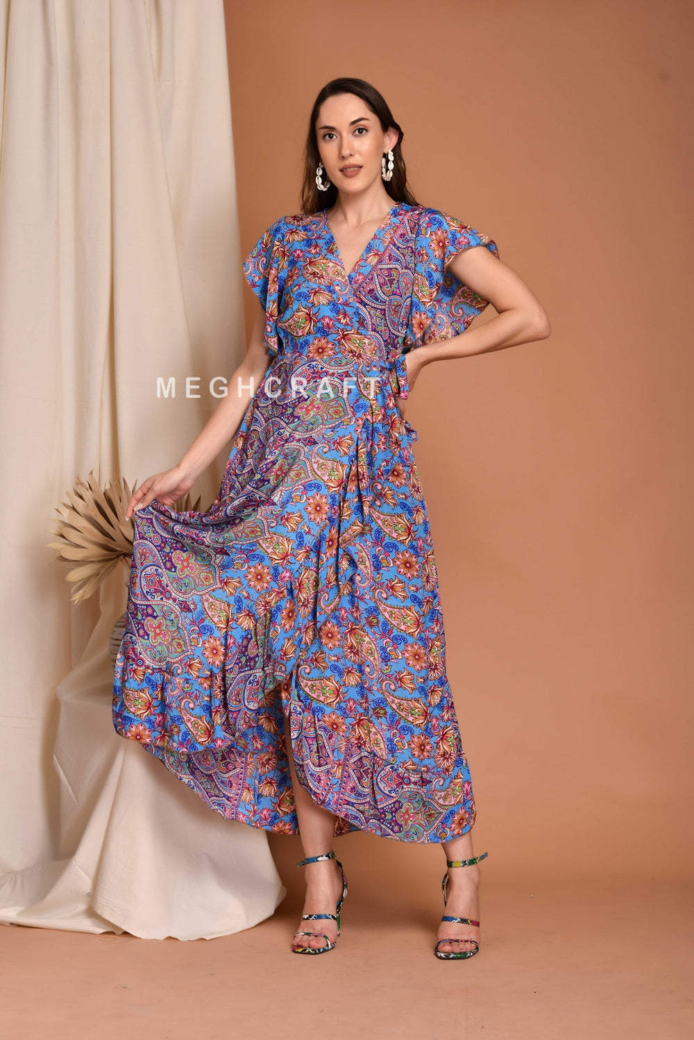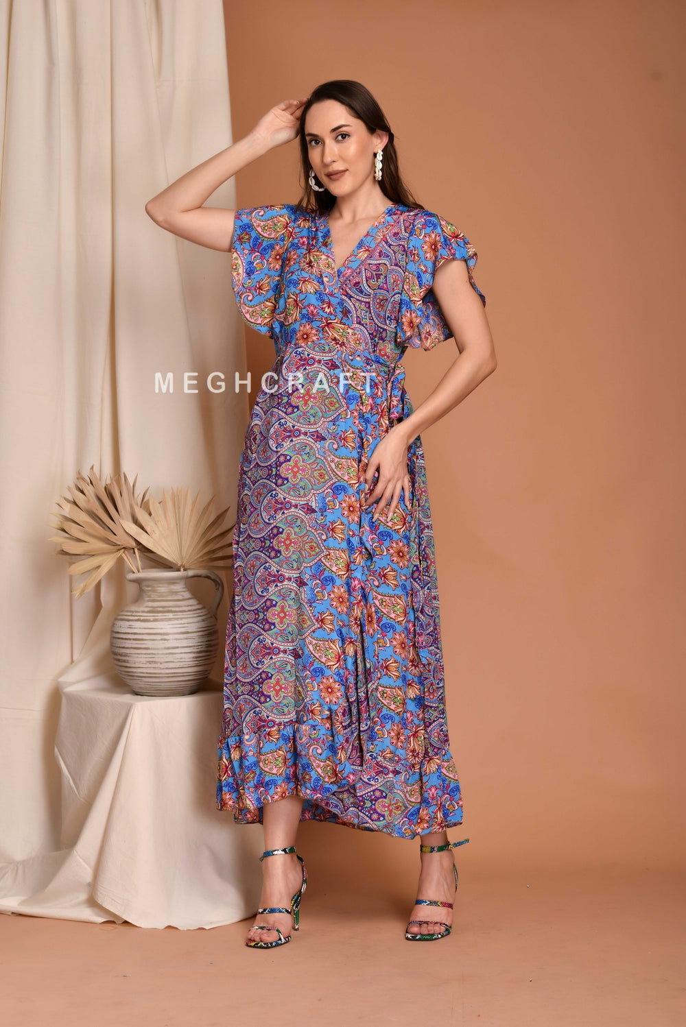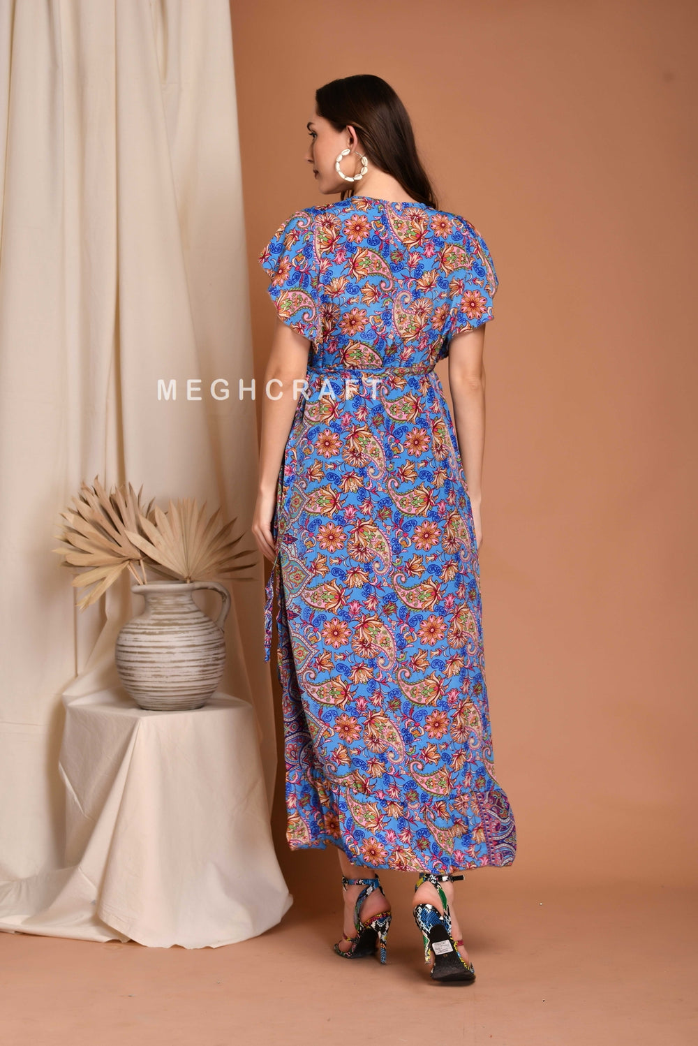 Indian Designer Long Floral Printed Wrap around Kimono Robe Cardigan.