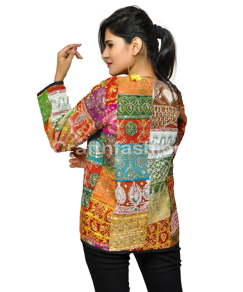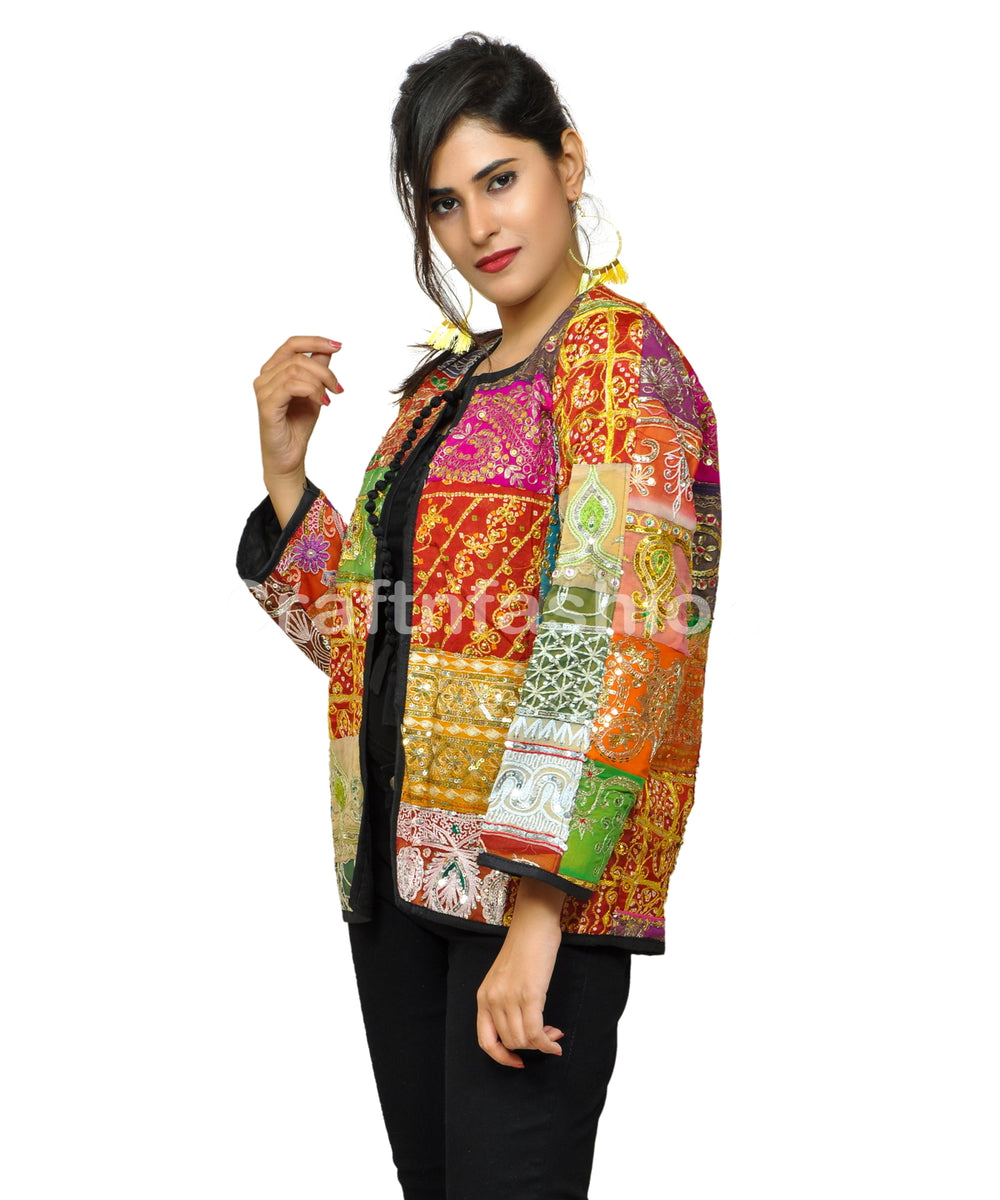 Indian Hand Embroidery Mirror work Jacket Crafted By Skilled Indian Gujarati Artisan Having both the Side Embroidery Work with Bright & Eye catchy Look.
