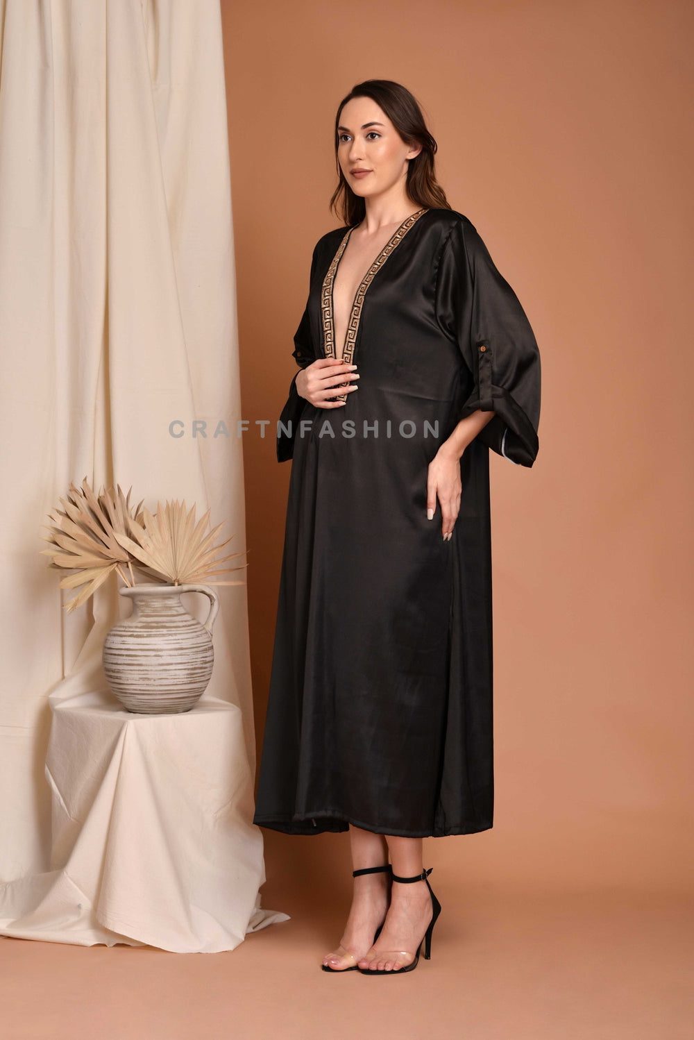 Indian Silk Hand work Boho Fashion Kimono Robe. Embroidery Border Boho Style Beach wear Body Cover Up. Best Suitable for Beach Wear, Fusion Wear, Fashion Wear, Traditional Wear