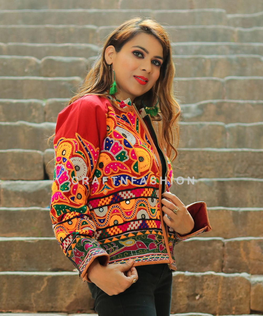 Indian Hand Embroidery Mirror work Jacket Crafted By Skilled Indian Gujarati Artisan Having both the Side Embroidery Work with Bright & Eye catchy Look.