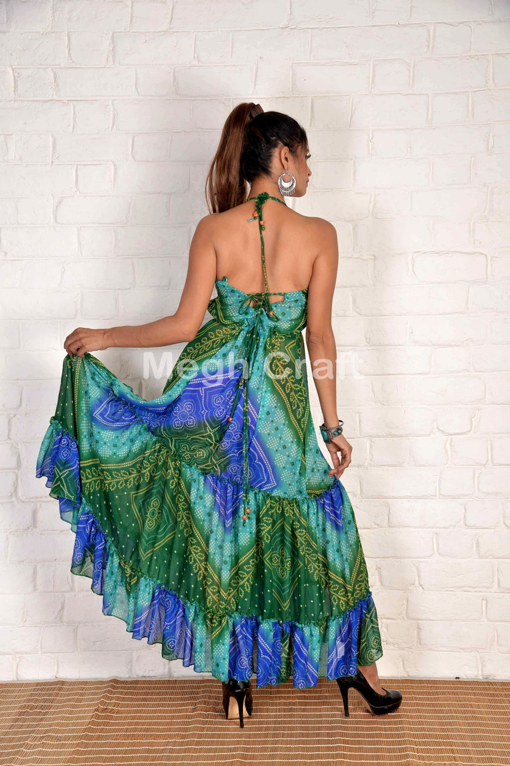 Designer Indian Chiffon Bandhani/ Bandhej Beach Wear Halter Neck long maxi Dress.