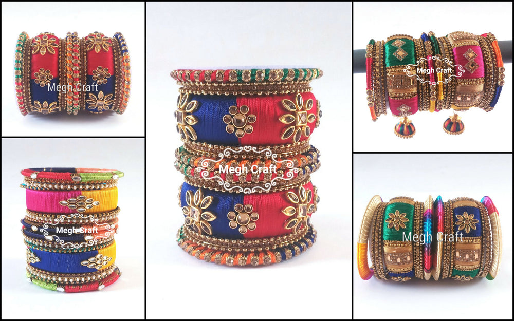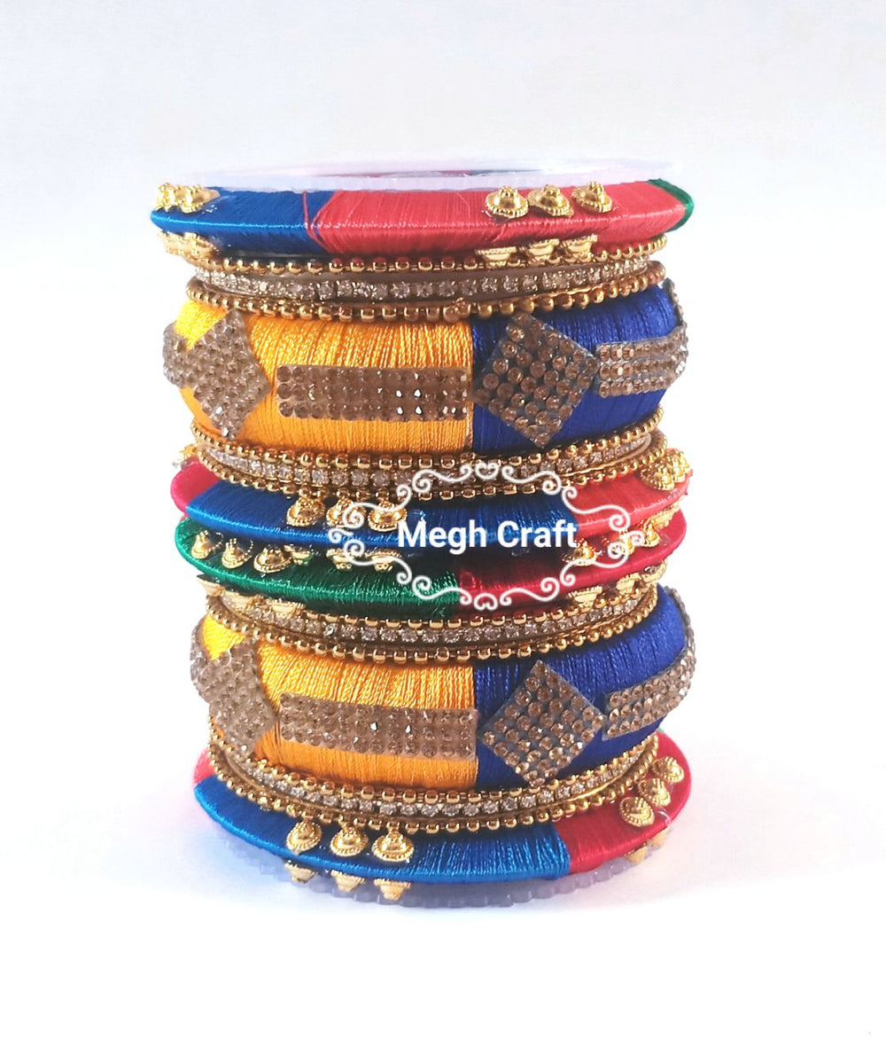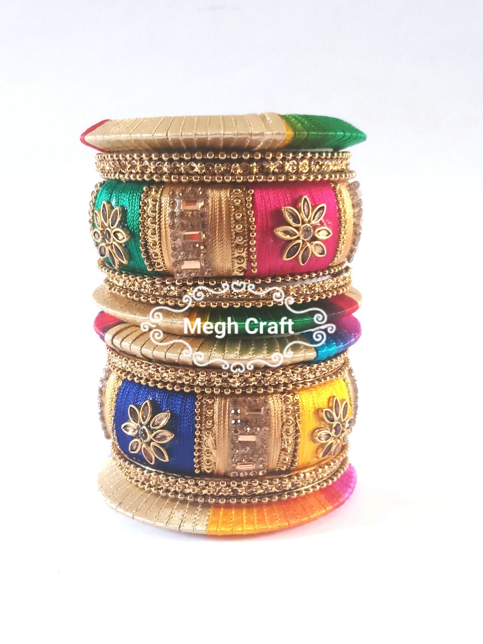 Traditional Handmade Silk Thread Kundan Stone Bridal's Bangle Chura Set.
