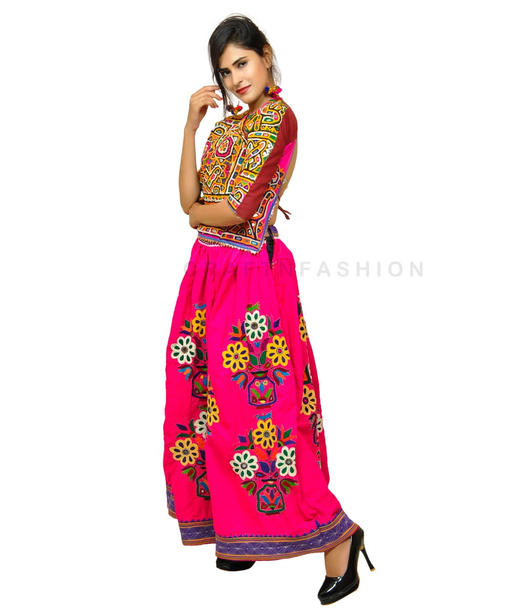 Indian Traditional Navratri kutch skirt Gujarati Hand Embroidered Kutch Skirt, Lehenga ,Ghagra with Birds and Flowers motifs.