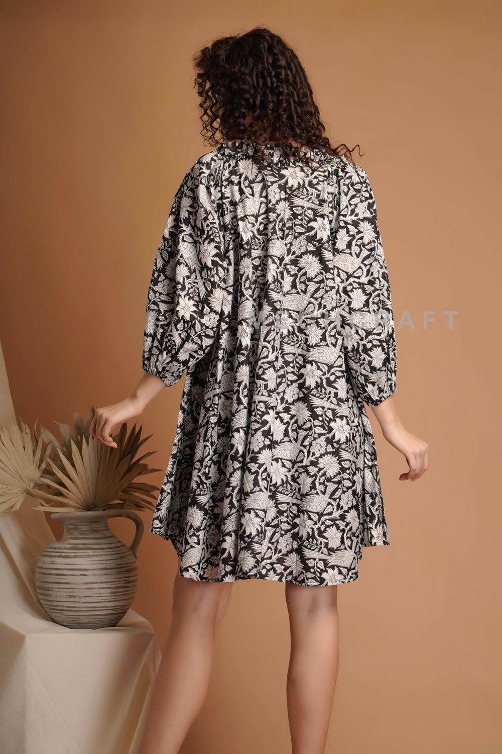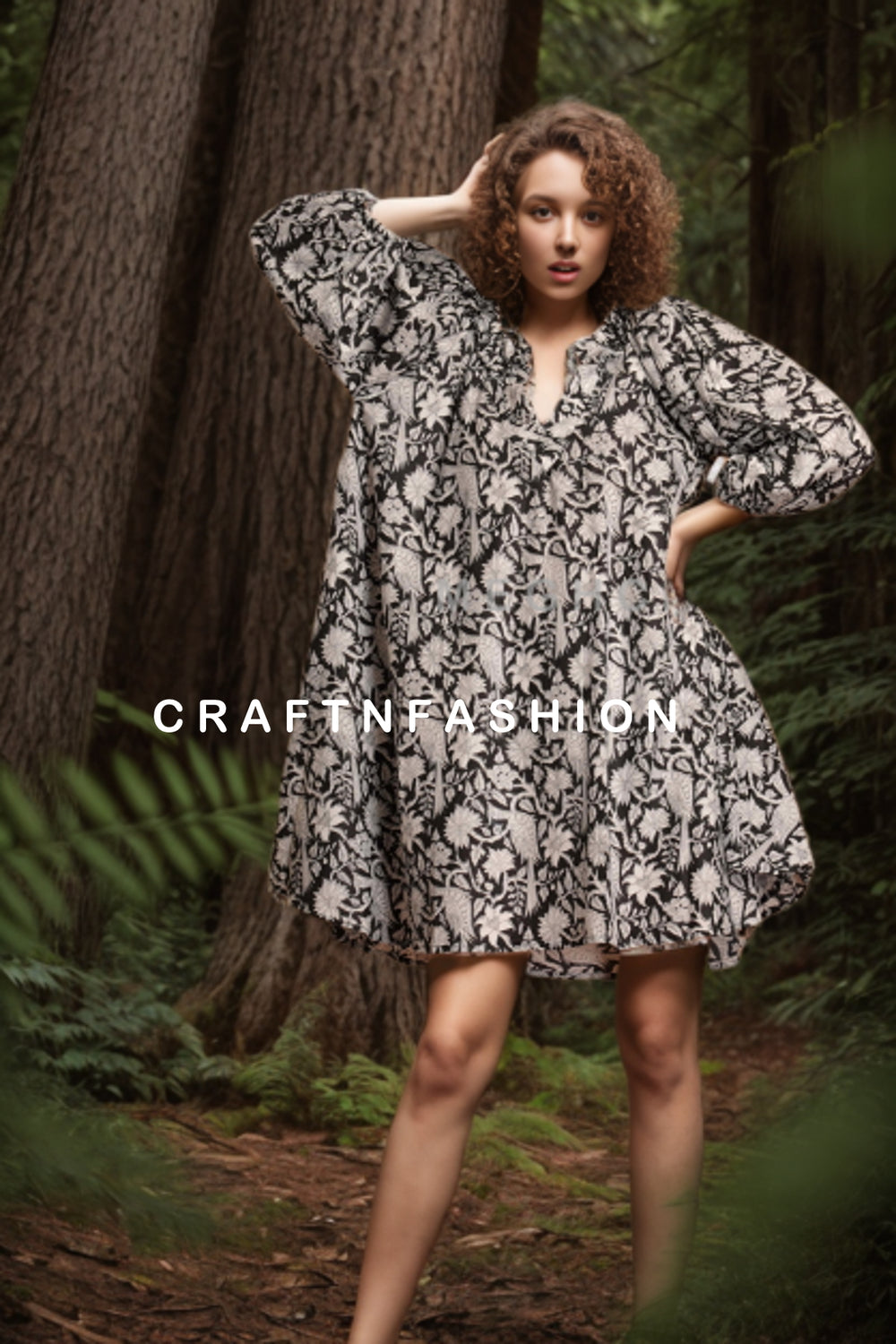 Boho Fashion Beach Wear Hand Block Printed Dress, Top.