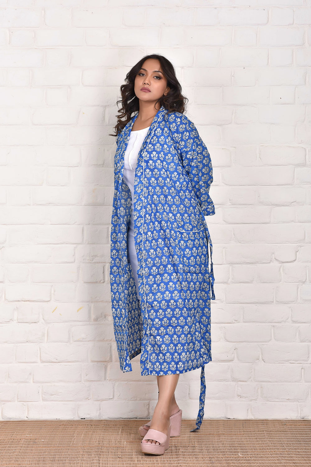 Designer Bohemian Floral Beach Wear Cotton Kimono Robe with Belt / Body Cover-up .