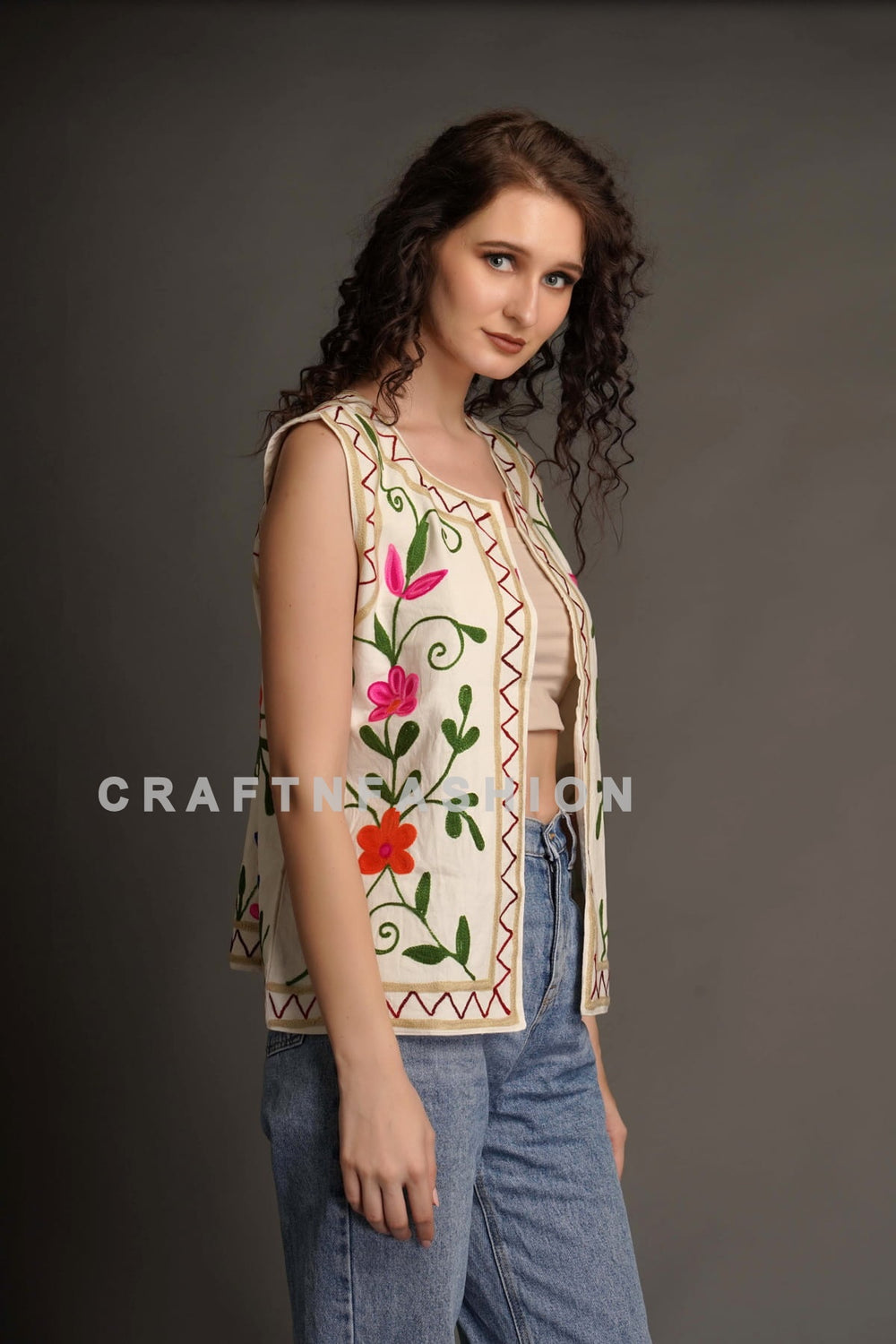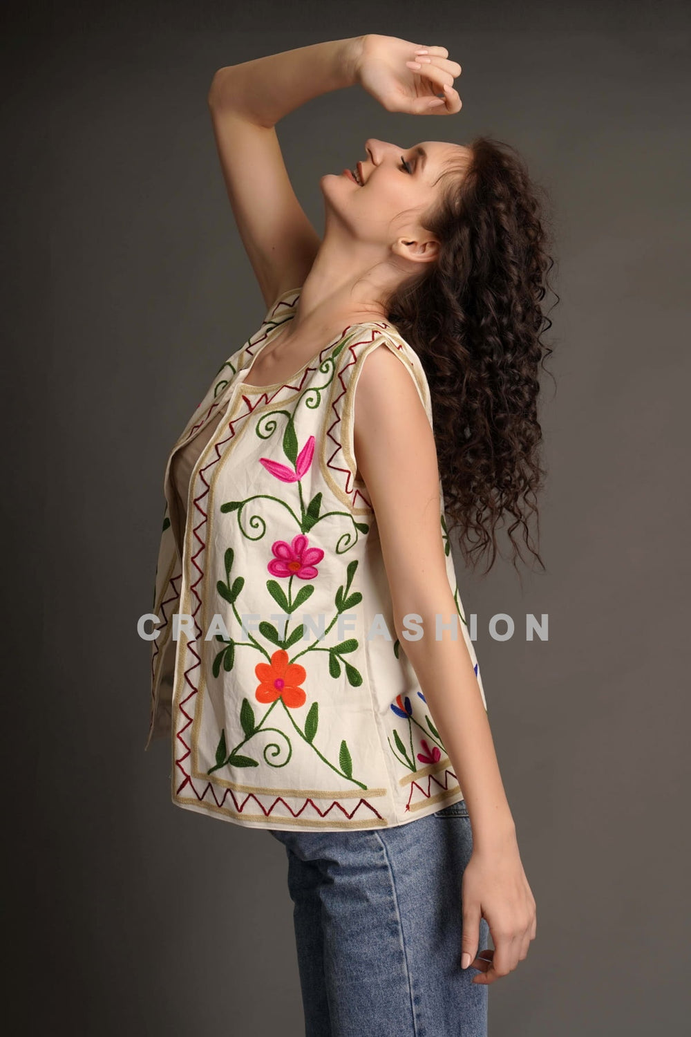 Embroidered Waist Coat, Boho Chic Embroidery Cotton Waist Coat. Embroidered Women Waist Coat, Handmade Waist Coat.