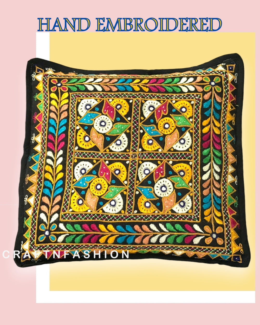 Traditional Gujarati Embroidery Work throw pillowcase cushion.