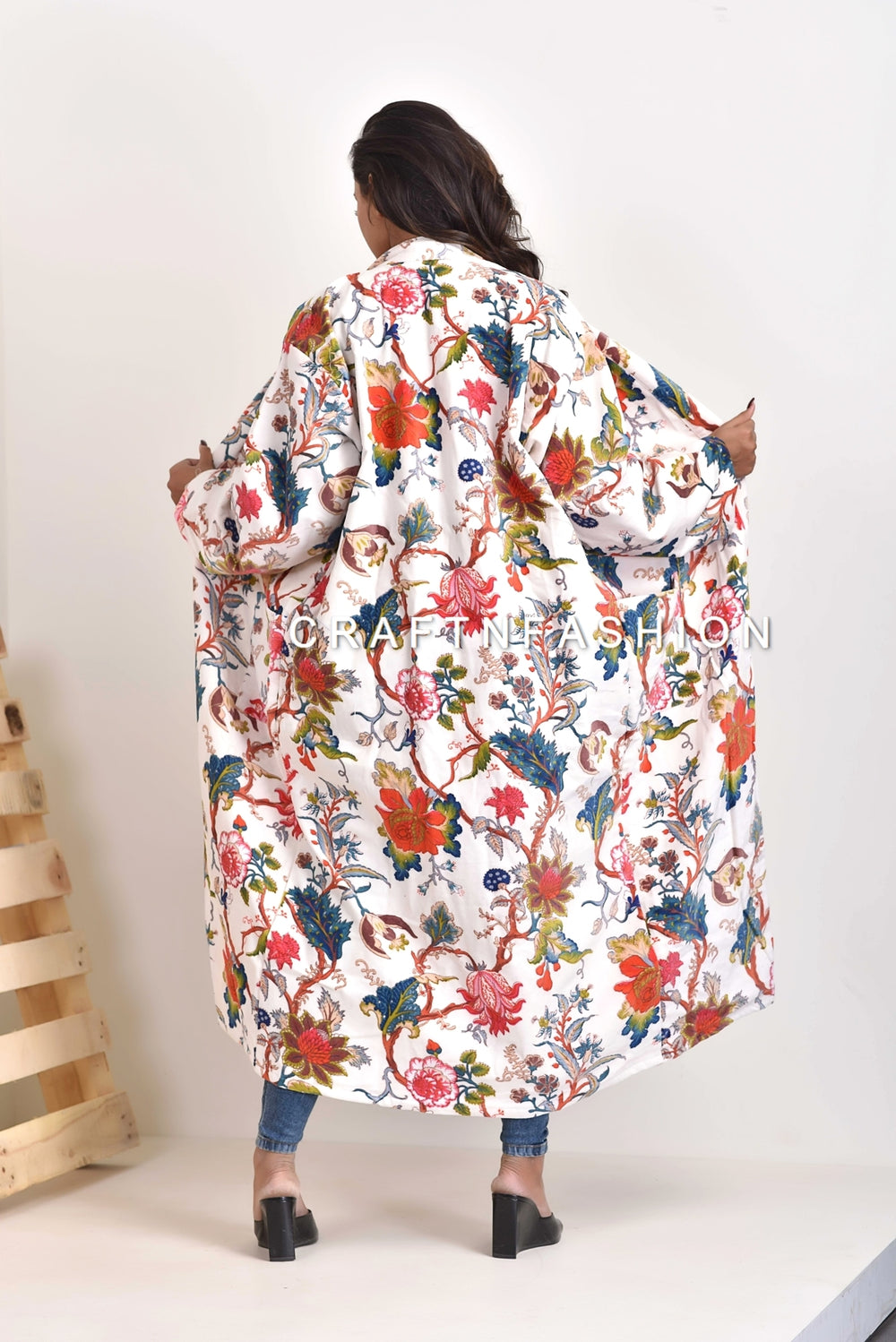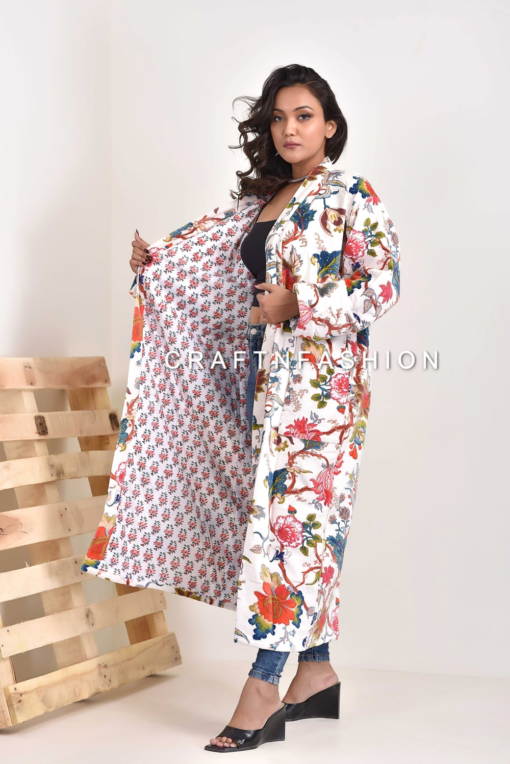 Designer Winter Wear Boho Fashion Velvet Jacket Kimono Robe Coat with matching Belt , Block Printed Lining.
