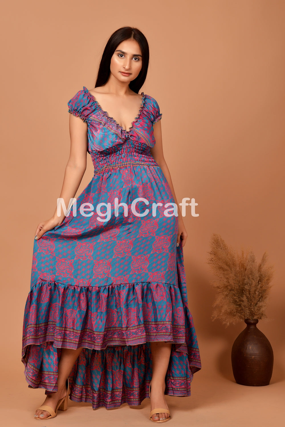 Latest Designer Summer fashion Bohemian High Low style maxi dress .Indo Western style High Low frill style dress will enhance your summer fashion beauty.