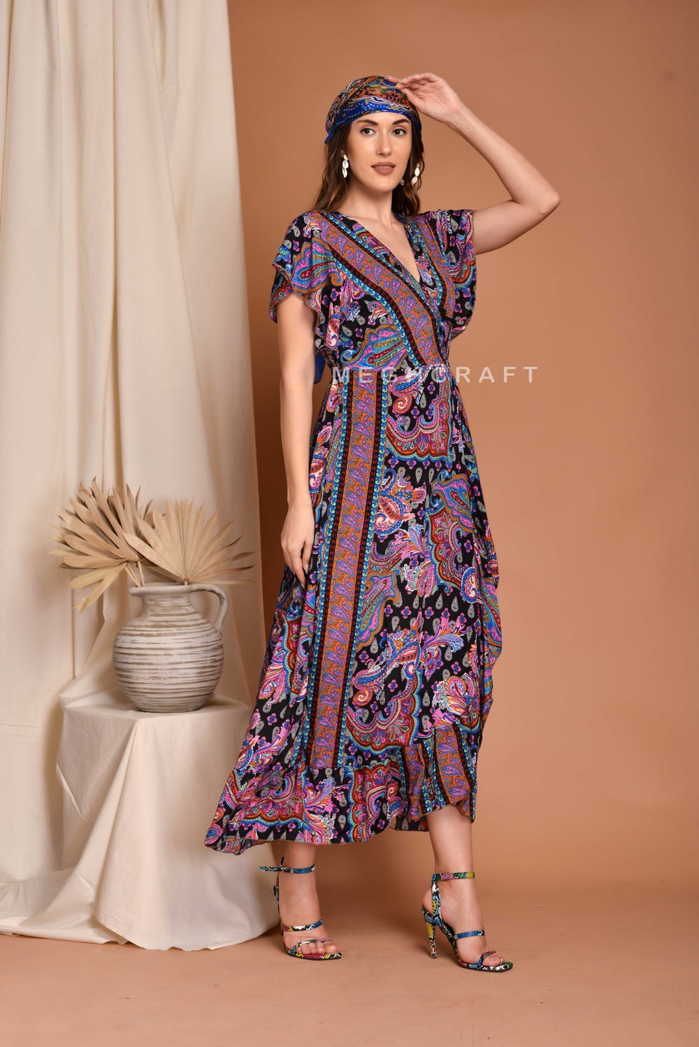Indian Designer Long Floral Printed Wrap around Kimono Robe Cardigan.