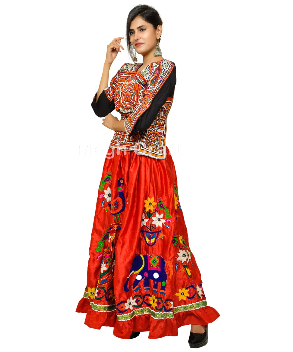 Indian Traditional Gujarati Hand Embroidered Kutch Skirt, Lehenga ,Ghagra with Birds and Flowers motifs.